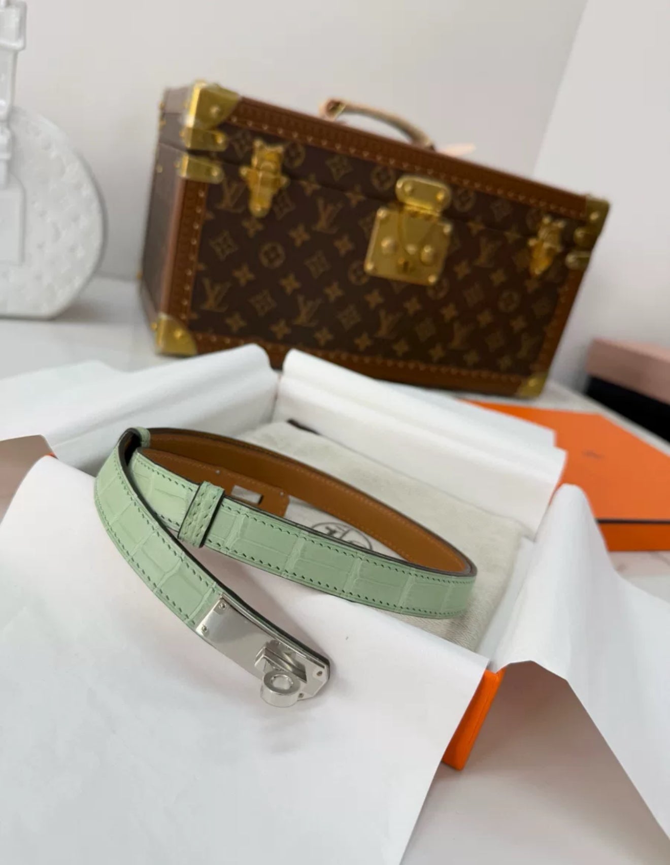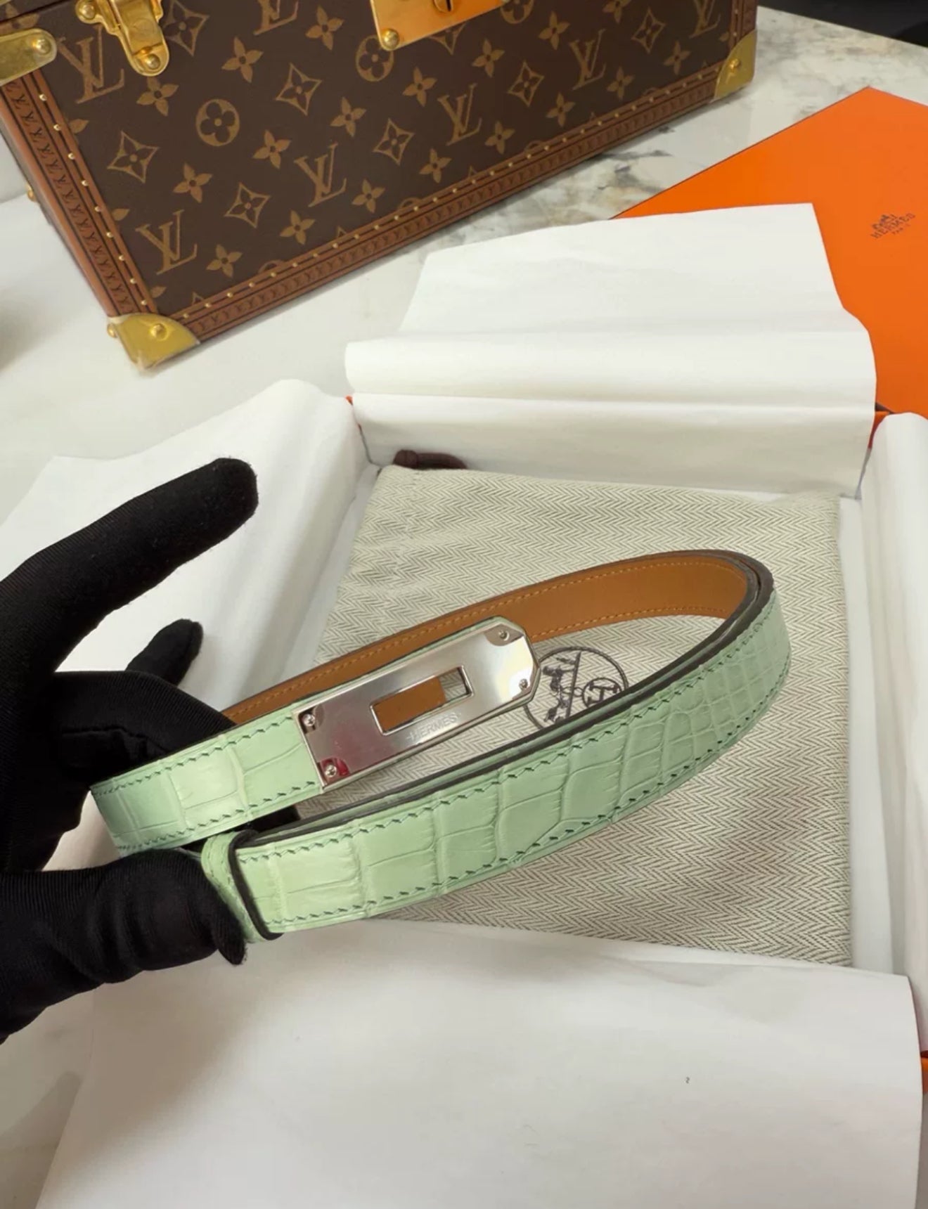 Hermès Kelly Belt Green Vert d’Eau Crocodile leather Palladium Hardware