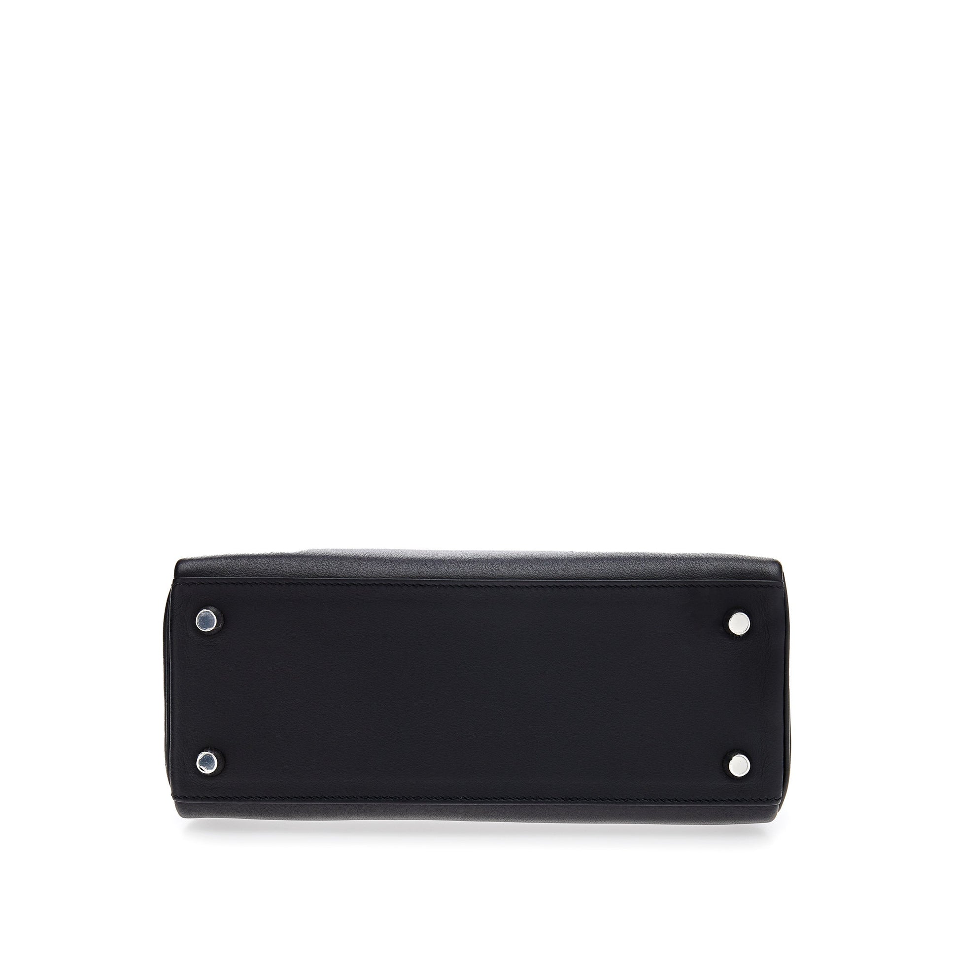 Hermes Kelly II Retourne 25 Veau Swift 89 Noir, Palladium Hardware