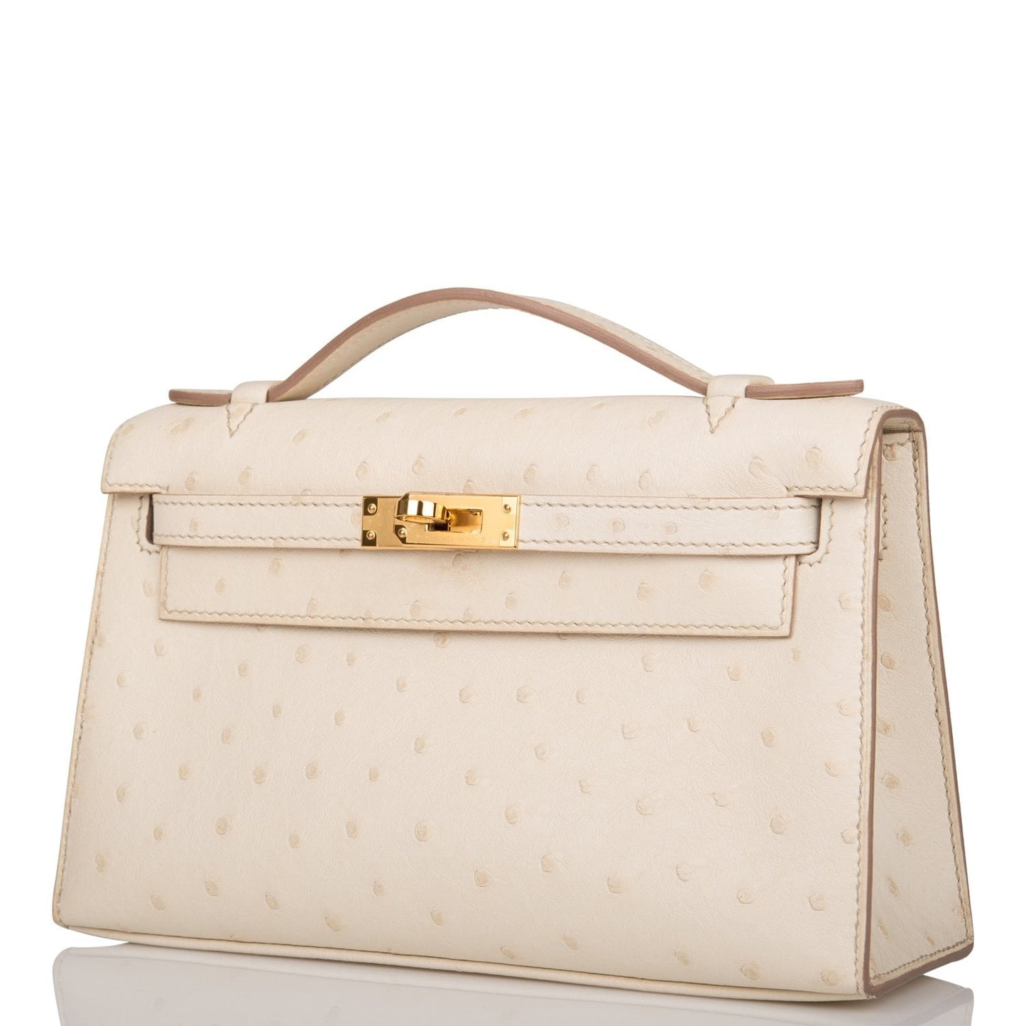 Hermes Kelly Pochette Beton Ostrich Gold Hardware