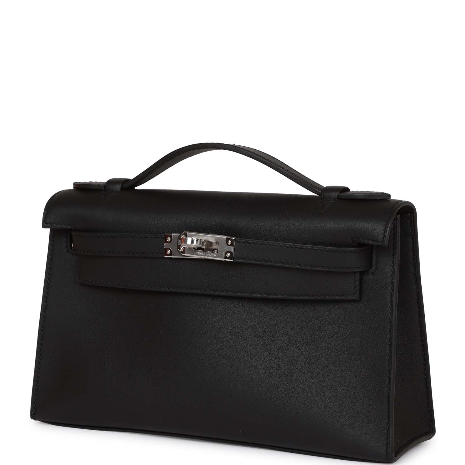 Hermes Kelly Pochette Black Swift Palladium Hardware