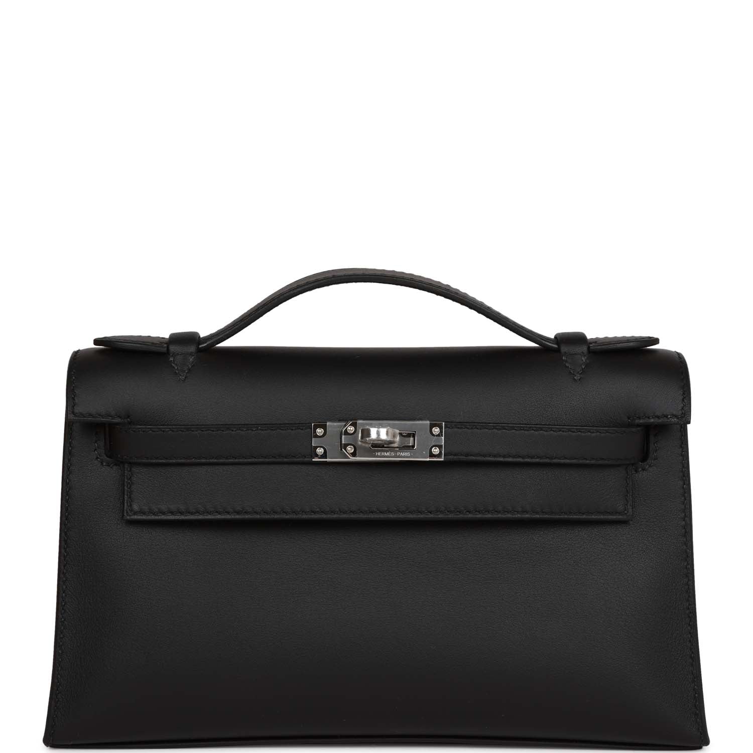 Hermes Kelly Pochette Black Swift Palladium Hardware