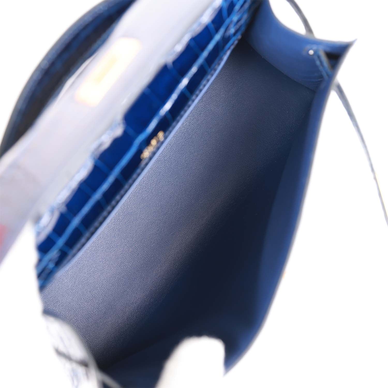 Hermes Kelly Pochette Bleu Saphir Shiny Alligator Gold Hardware