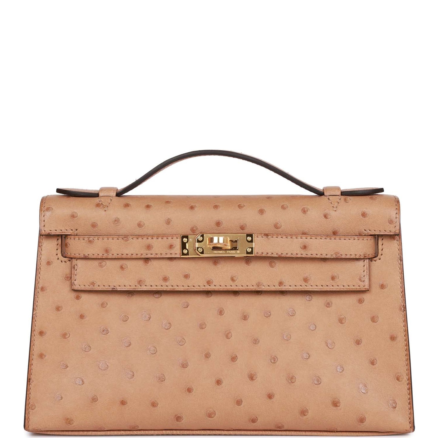 Hermes Kelly Pochette Chai Ostrich Gold Hardware