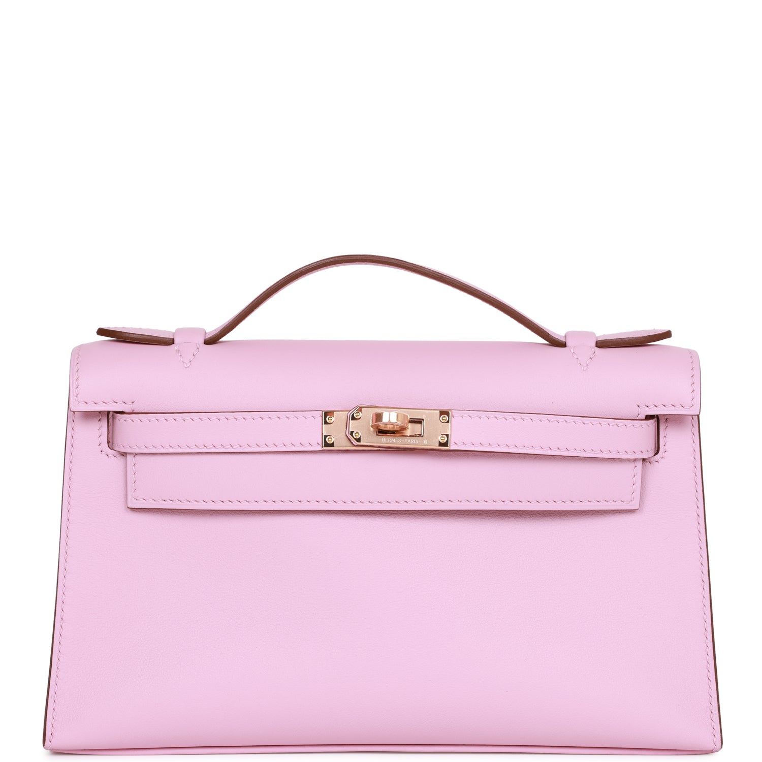 Hermes Kelly Pochette Mauve Sylvestre Swift Rose Gold Hardware