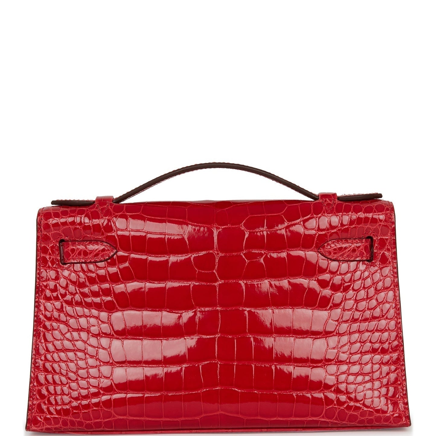 Hermes Kelly Pochette Rouge de Coeur Shiny Alligator Gold Hardware