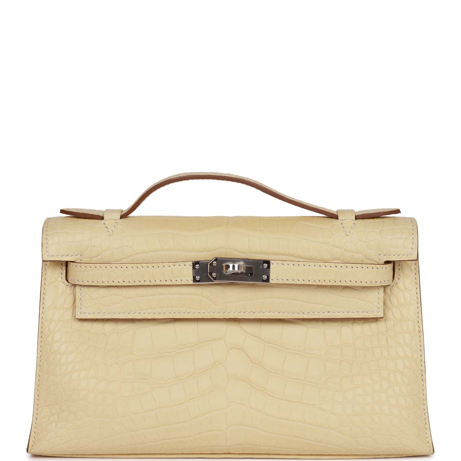 Hermes Kelly Pochette Vanille Matte Alligator Palladium Hardware