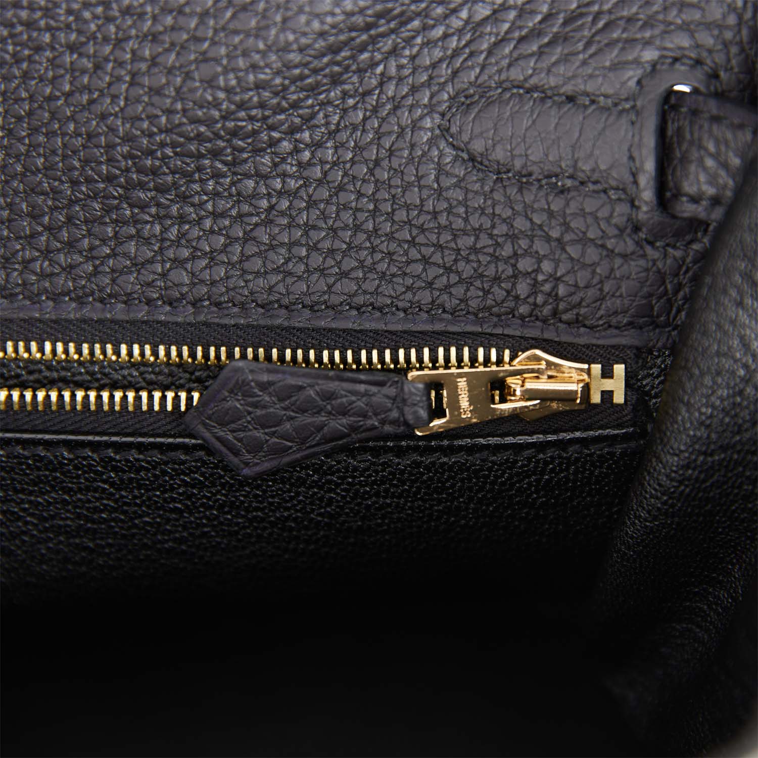 The interior is lined with black chevre leather and has one zip pocket with an Hermes engraved pull and one open pocket on the opposite side.