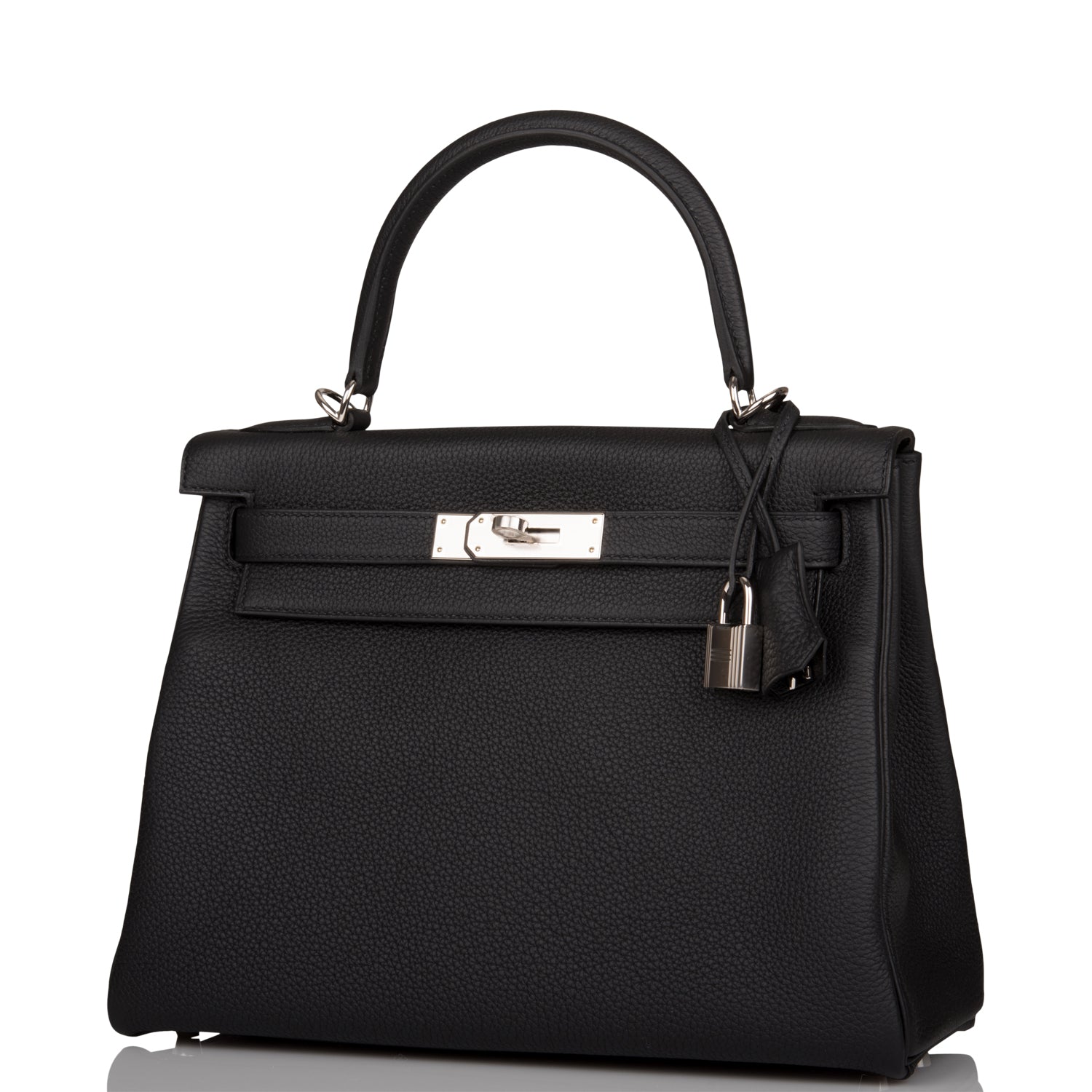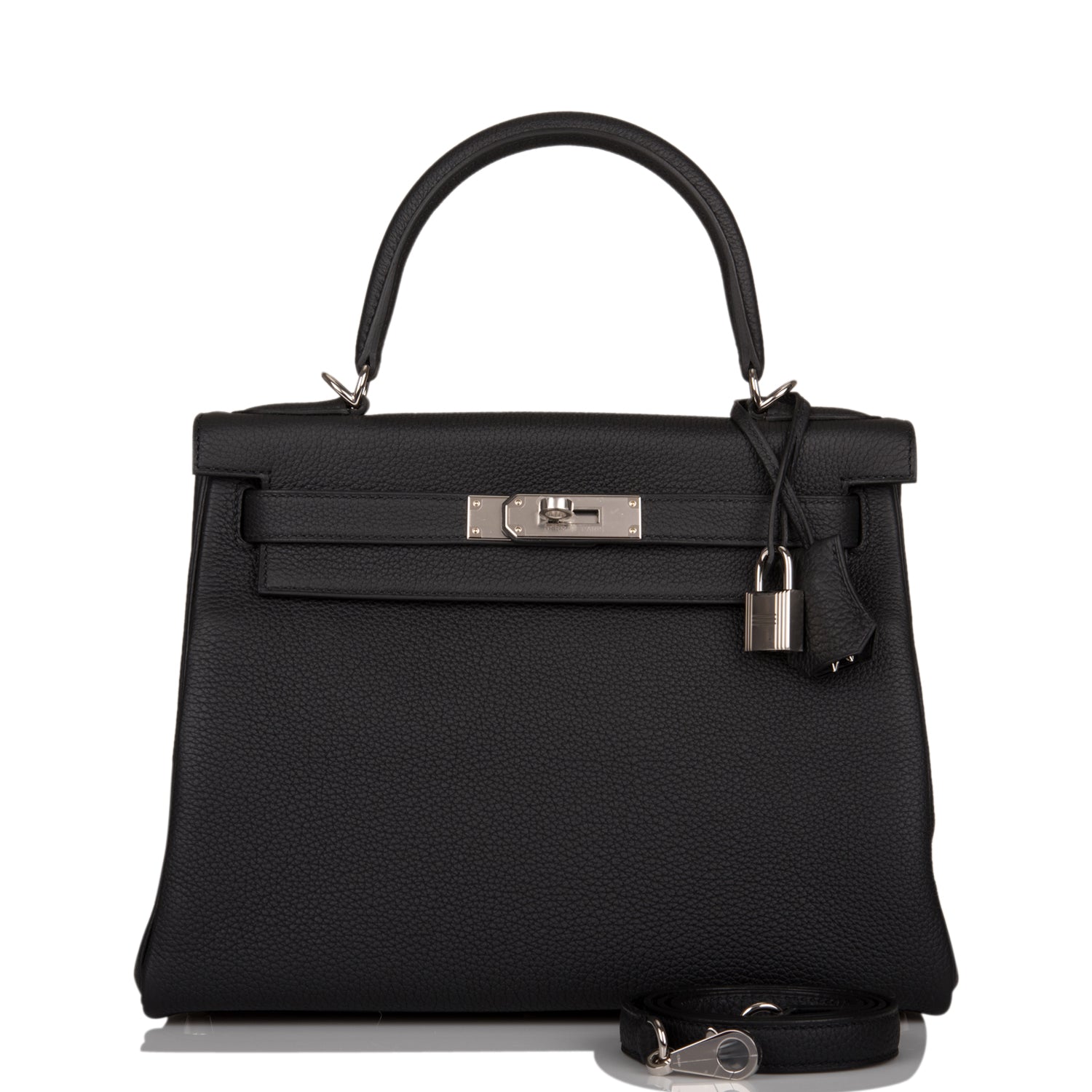Hermes Kelly 28 Retourne Black Togo Palladium Hardware