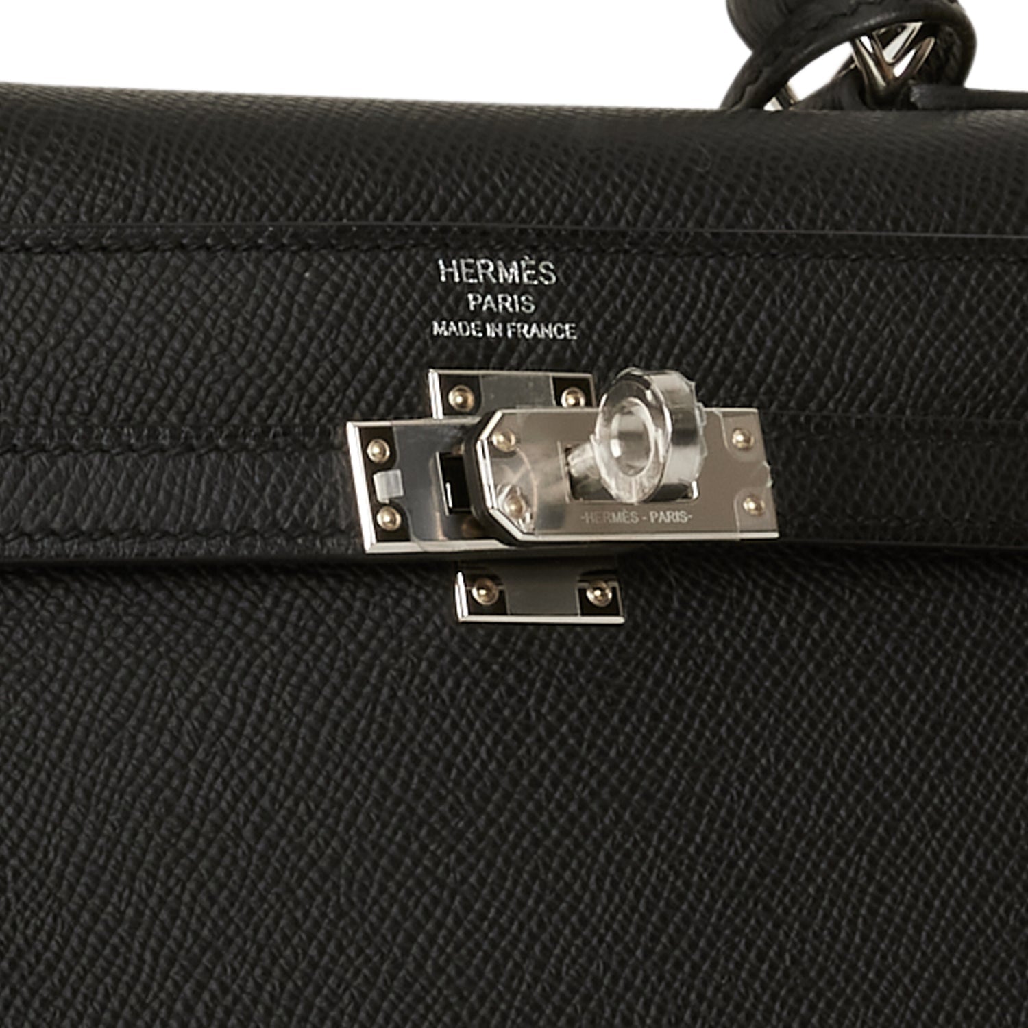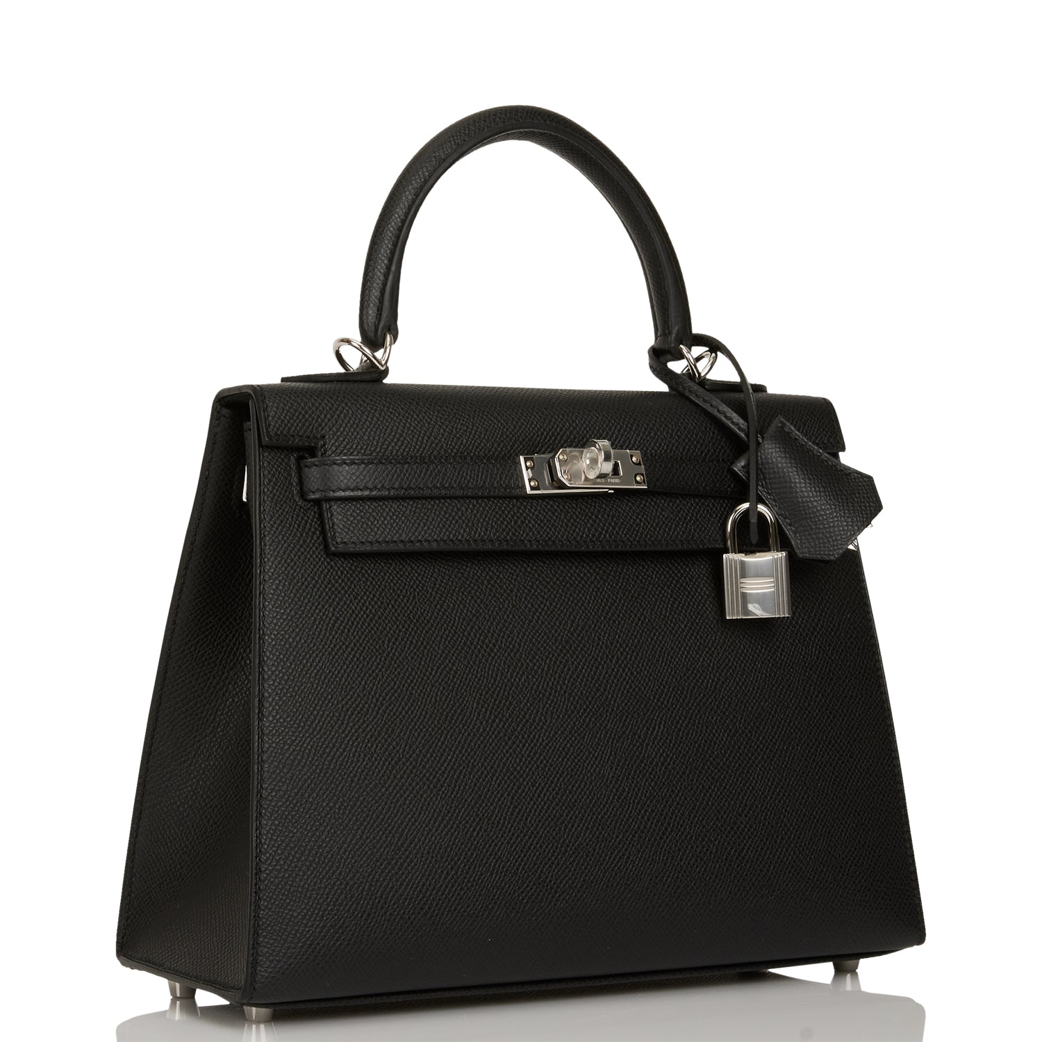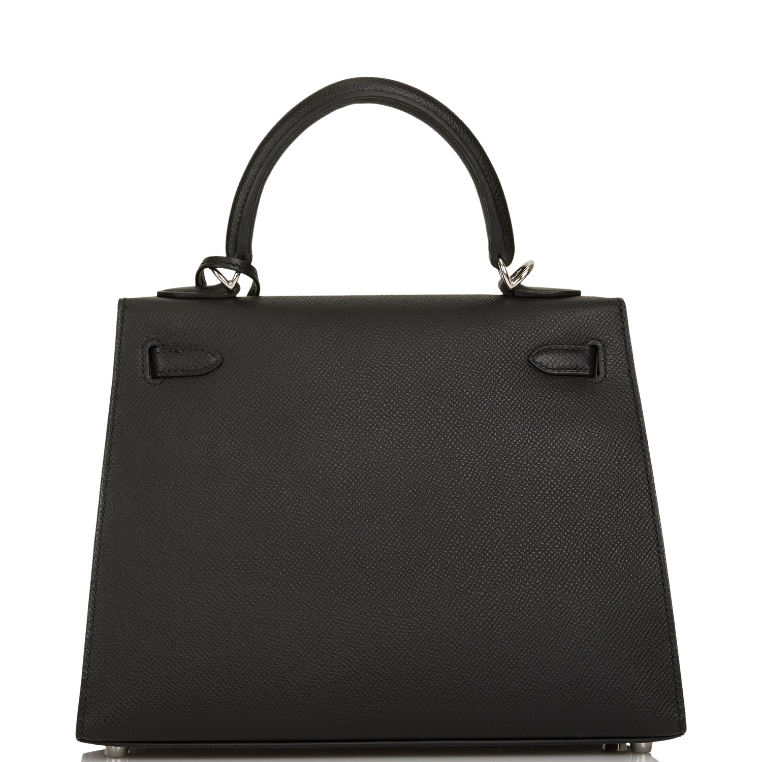 Hermes Kelly 25 Sellier Black Epsom Palladium Hardware