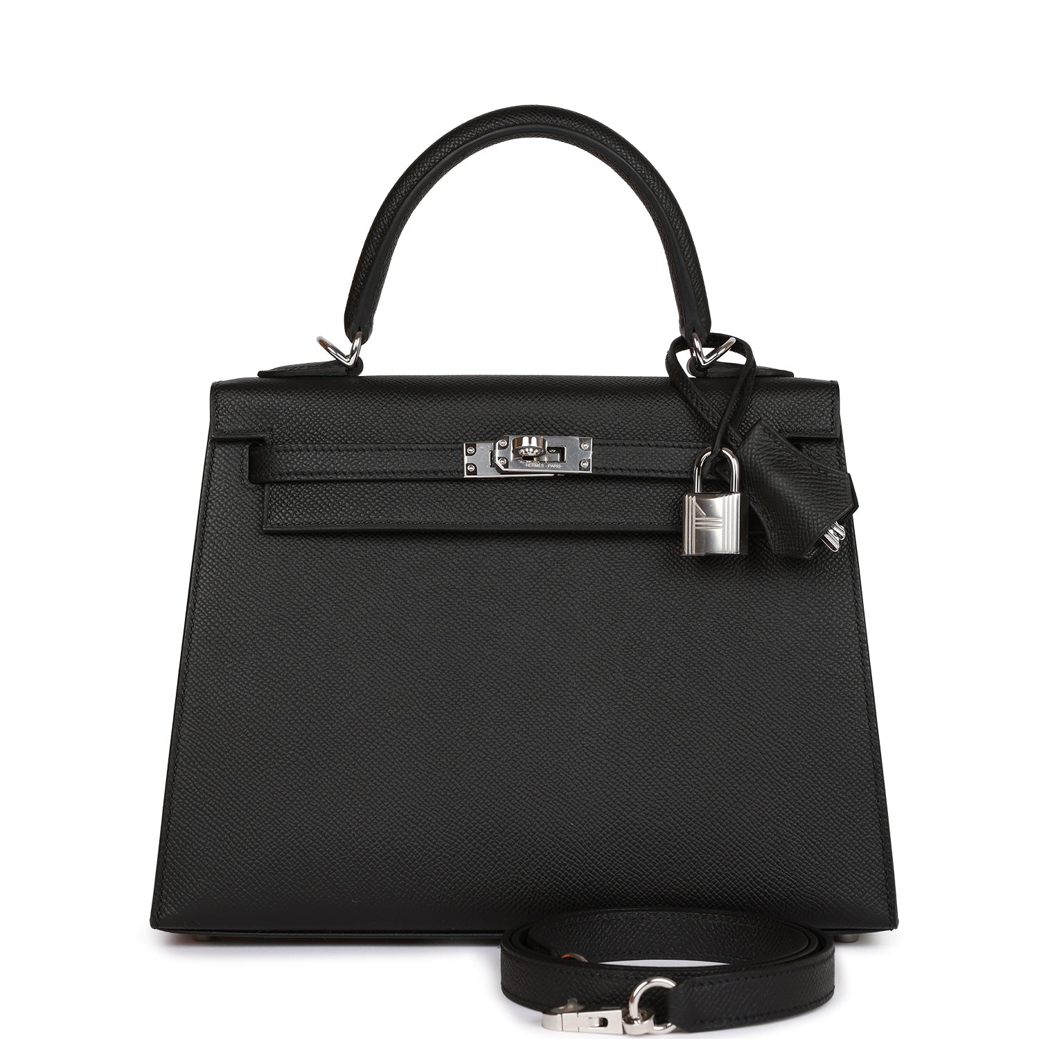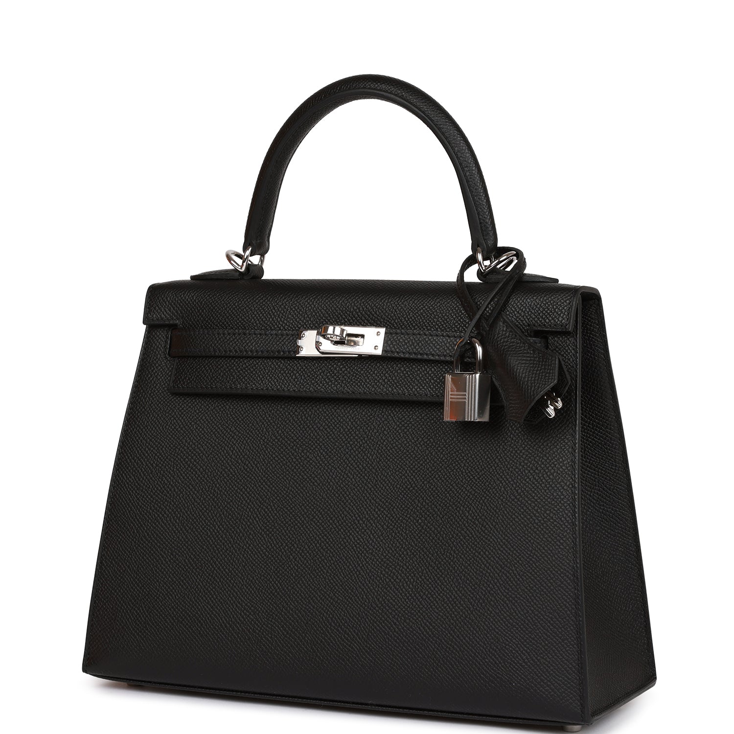 Hermes Kelly 25 Sellier Black Epsom Palladium Hardware