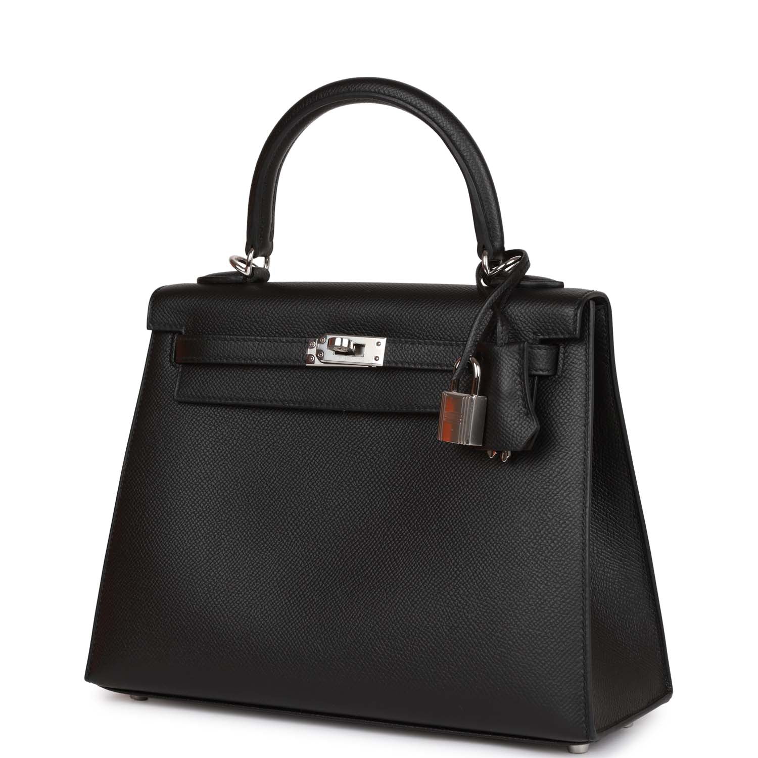 Hermes Kelly 25 Sellier Black Epsom Palladium Hardware