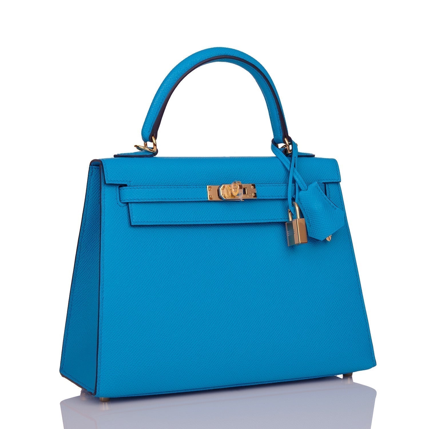 Hermes Kelly 25 Sellier Bleu Frida Epsom Gold Hardware