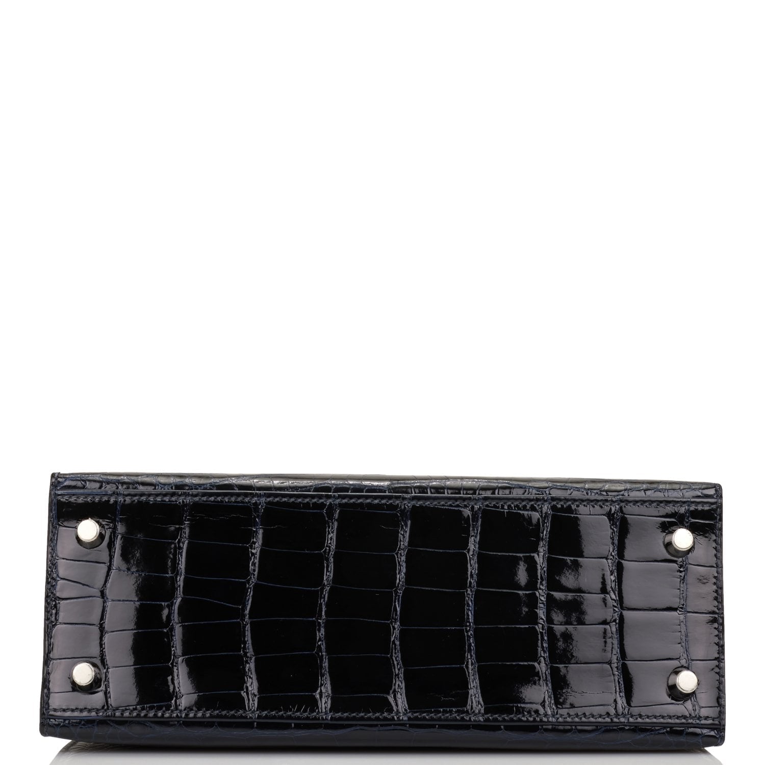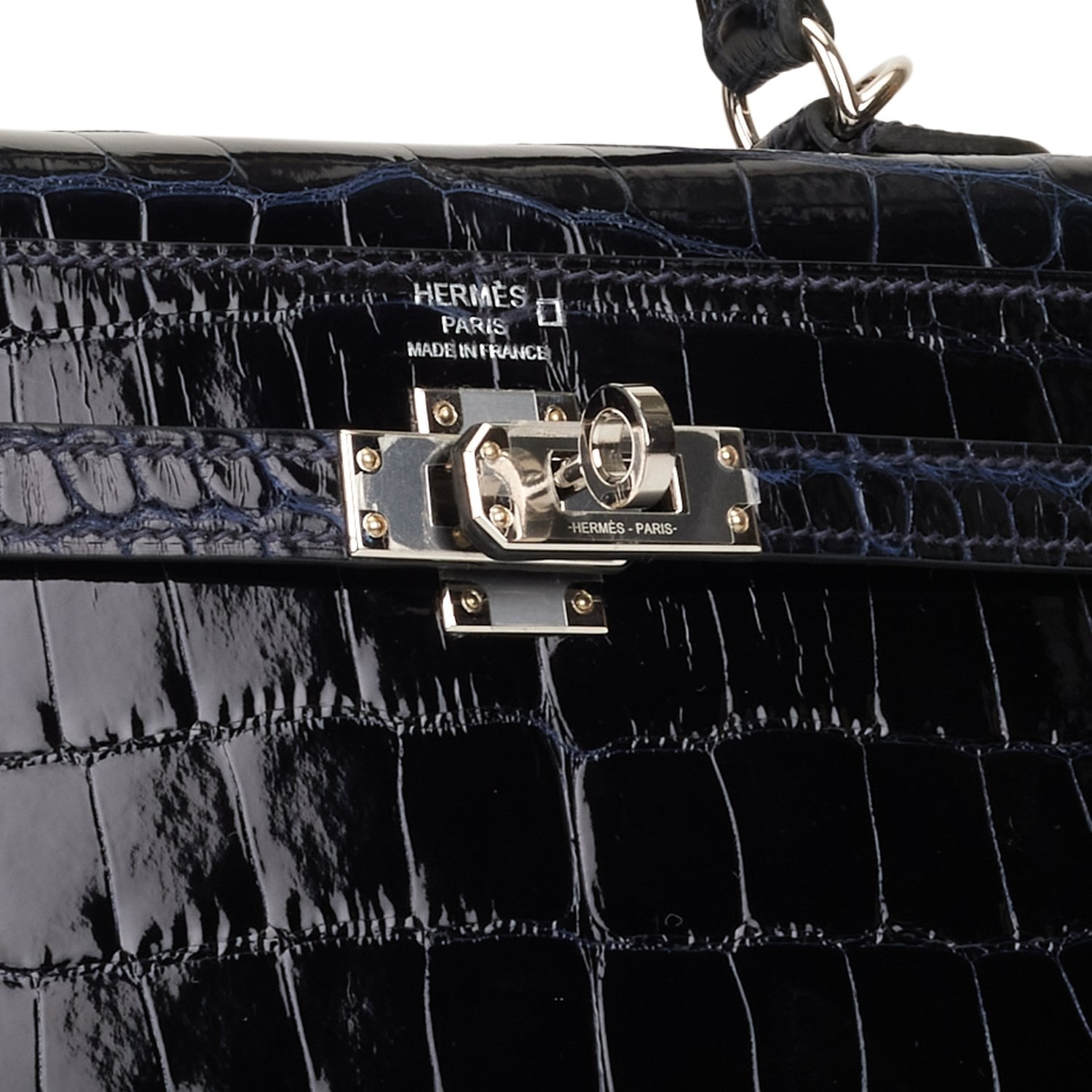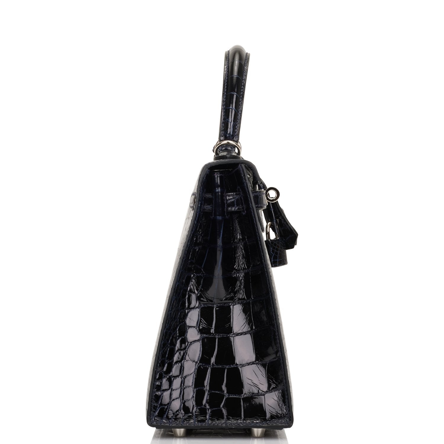 Hermes Kelly 25 Sellier Bleu Marine Verso Shiny Alligator Palladium Hardware
