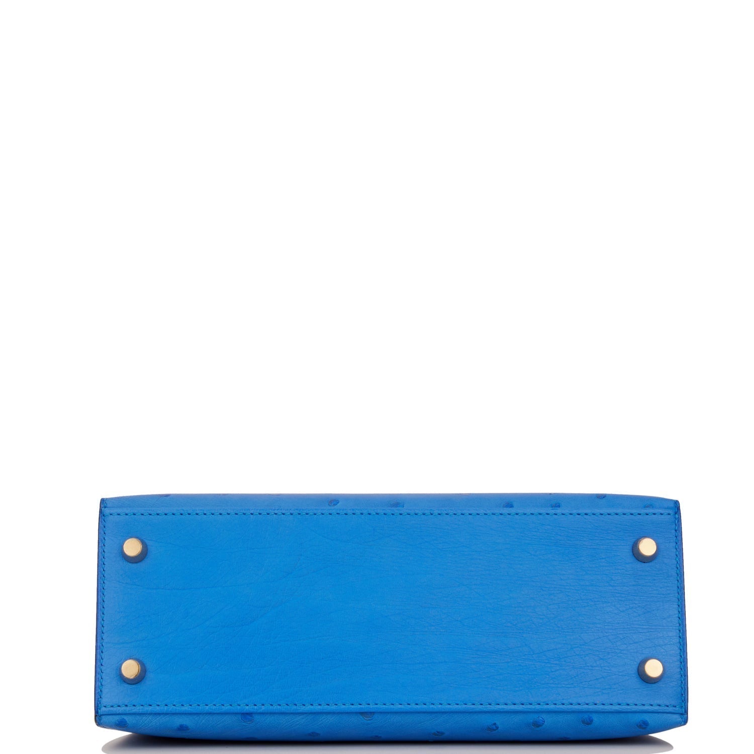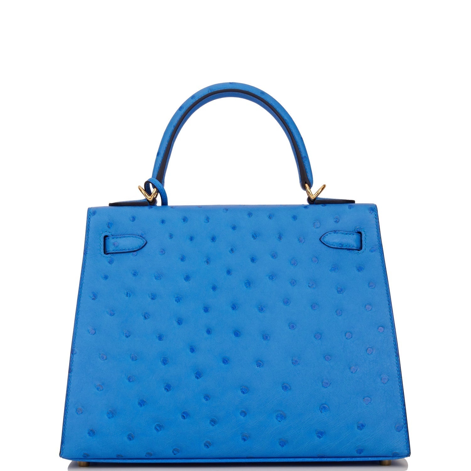 Hermes Kelly 25 Sellier Bleuet Ostrich Gold Hardware