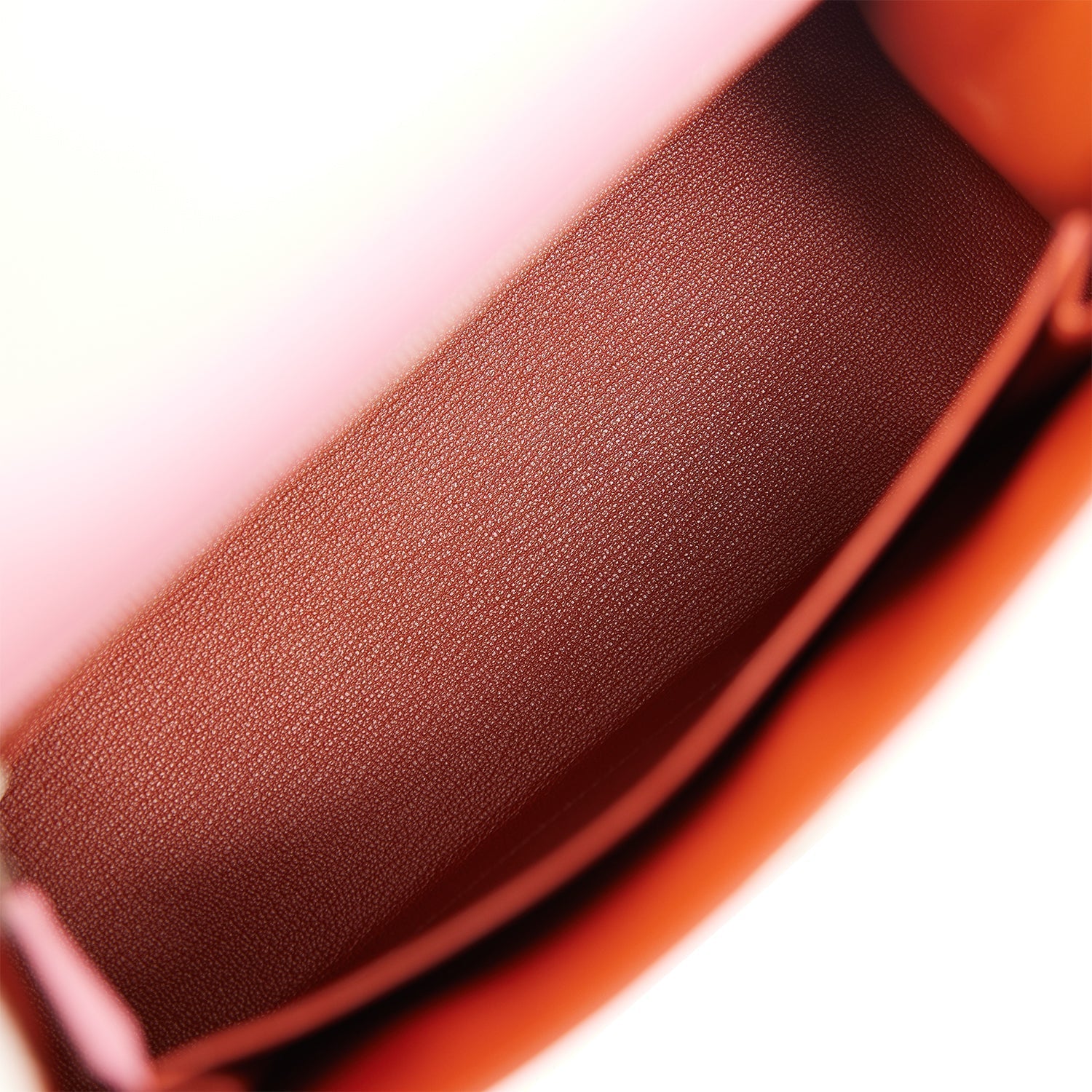 The interior is lined with Brique chevre leather and has one zip pocket with an Hermes engraved pull and one open pocket on the opposite side.