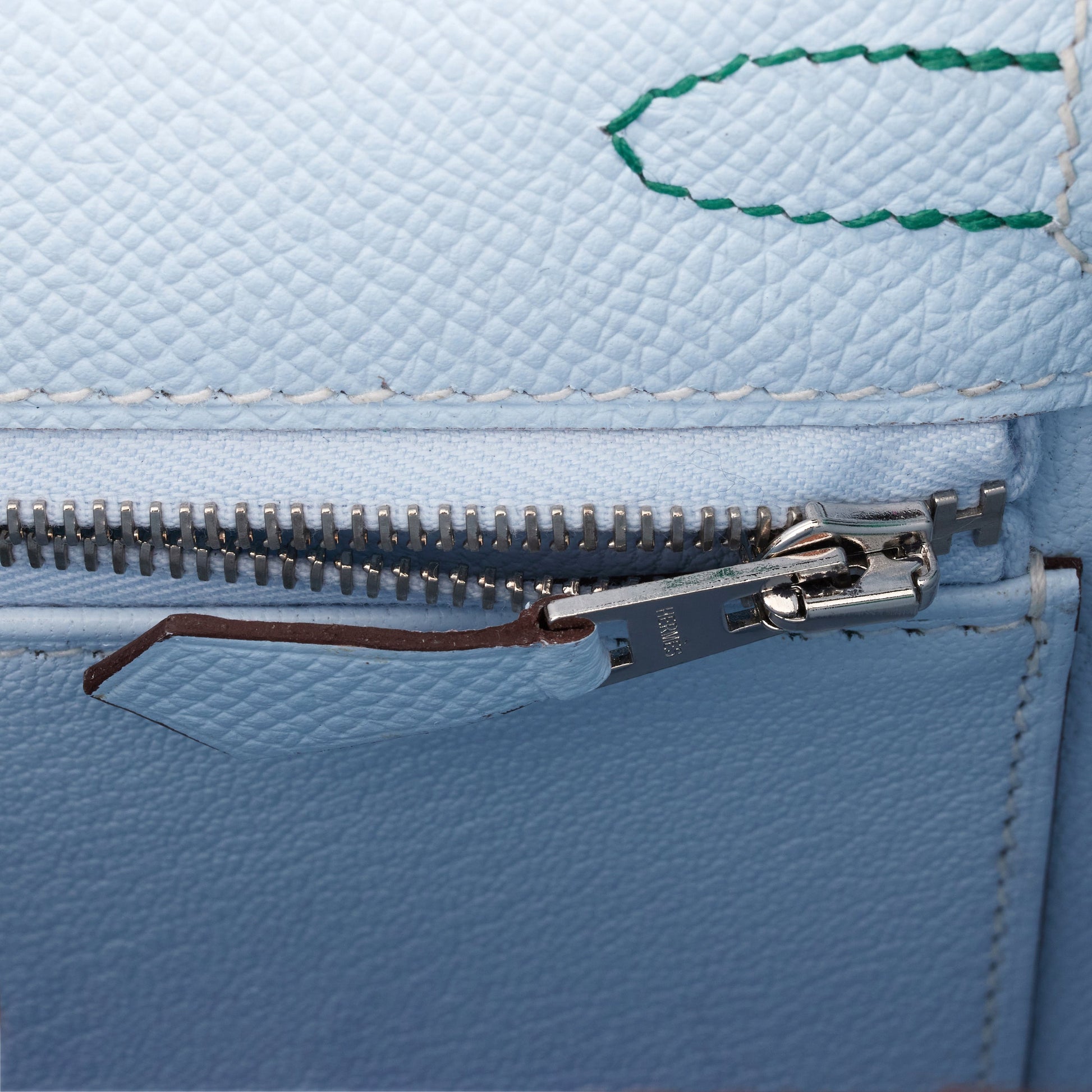 Hermes Kelly 25 Sellier Tri-Color Bleu Brume, Vert Jade and Gold Epsom Palladium Hardware