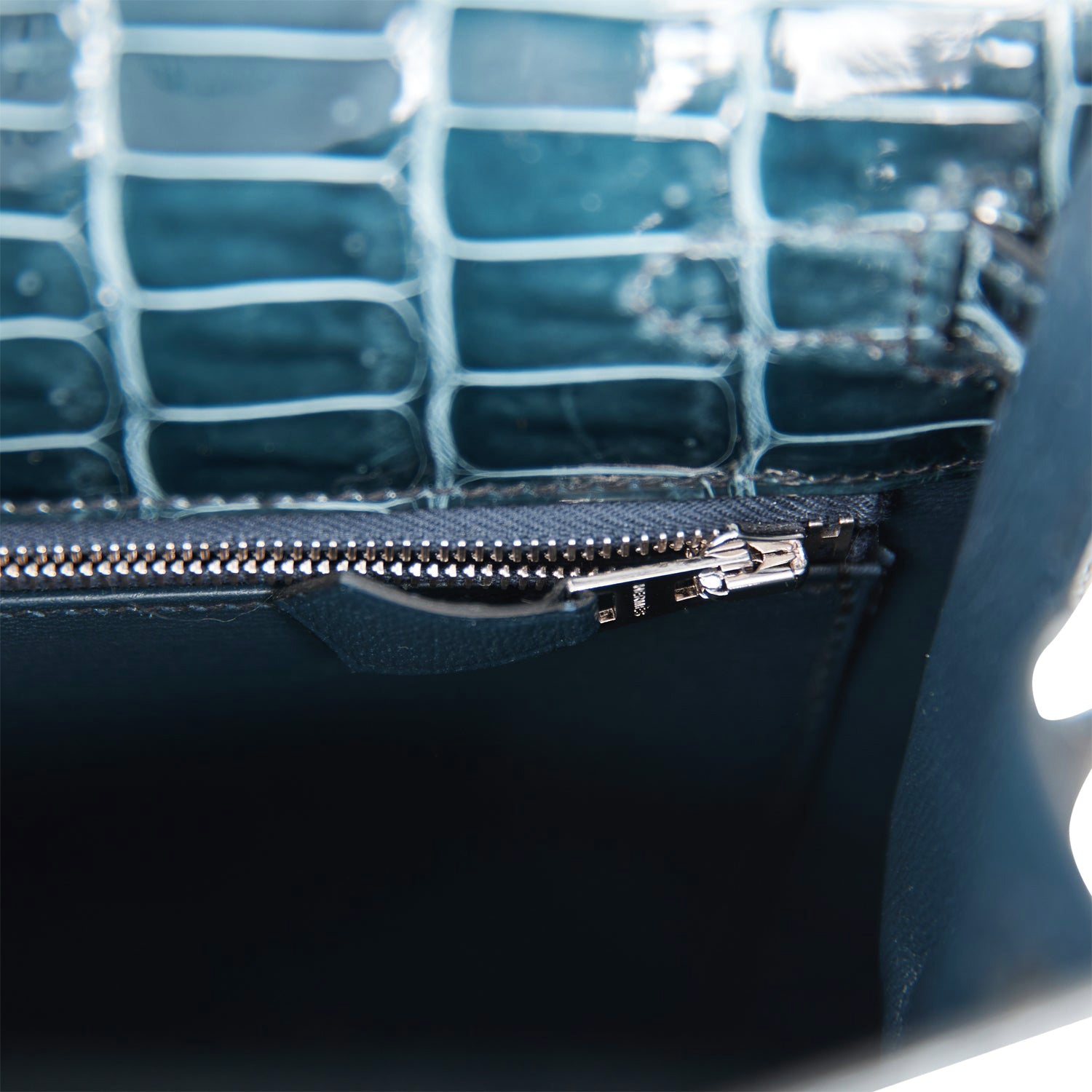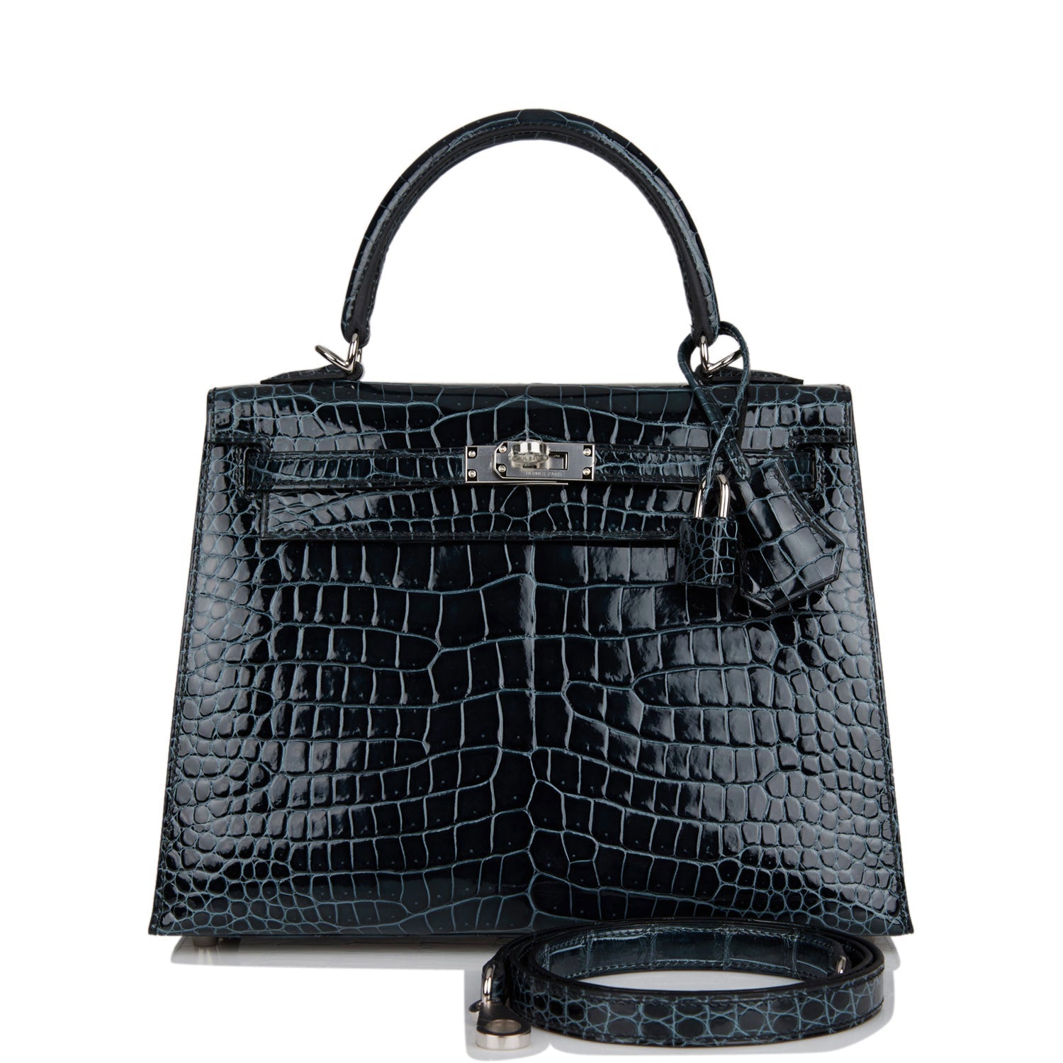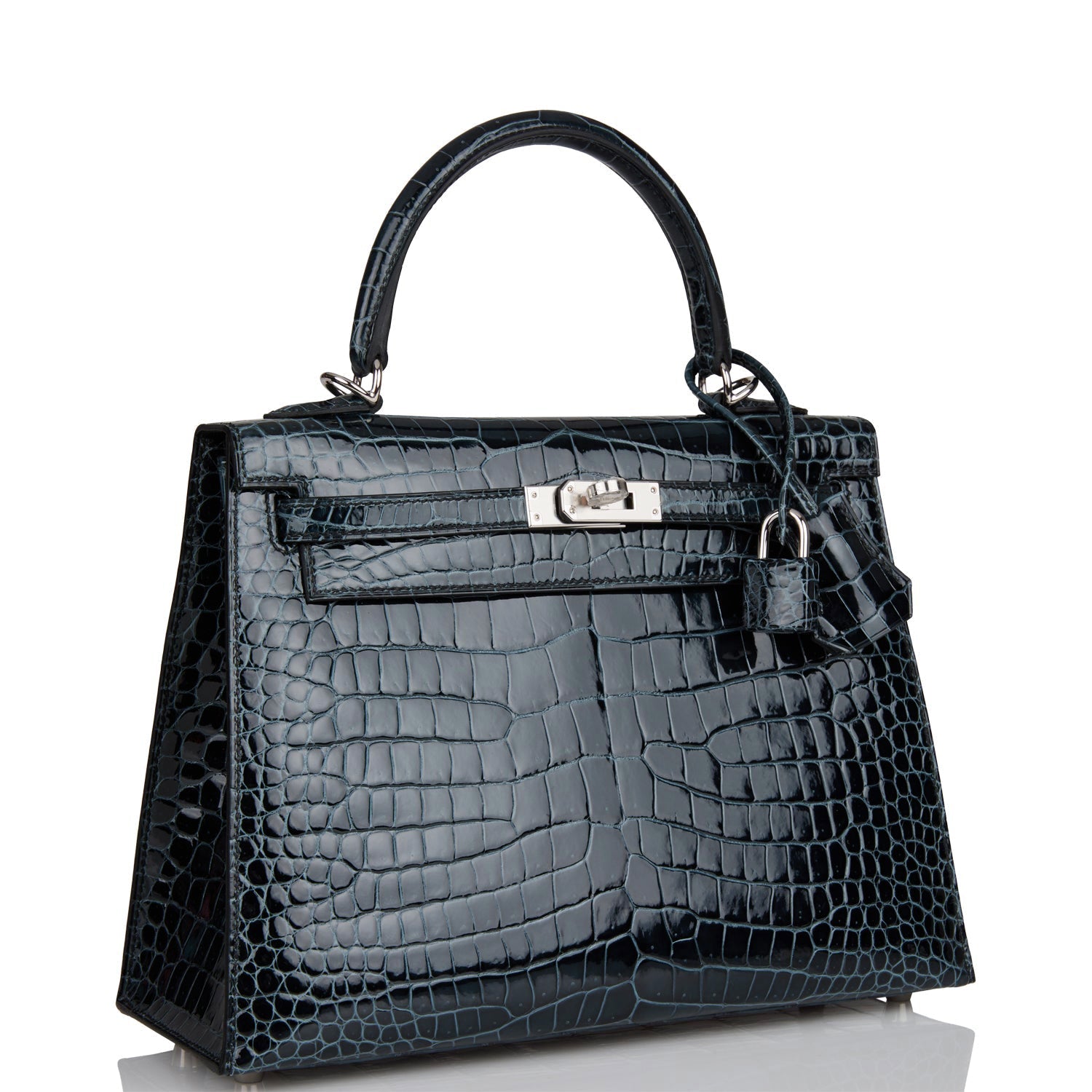 Hermes Kelly 25 Sellier Vert Rousseau Shiny Niloticus Crocodile Palladium Hardware
