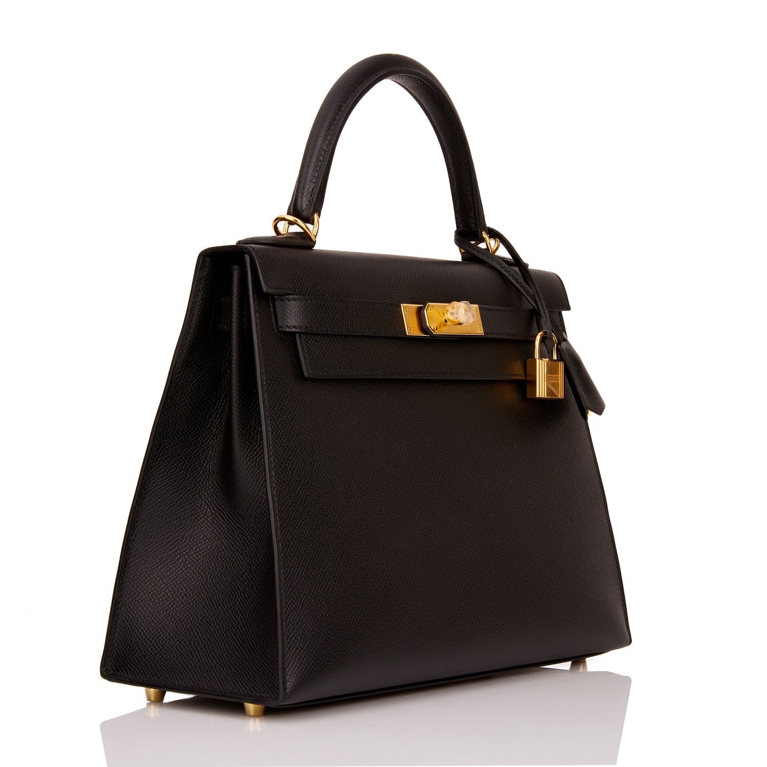 Hermes Kelly 28 Sellier Black Epsom Gold Hardware