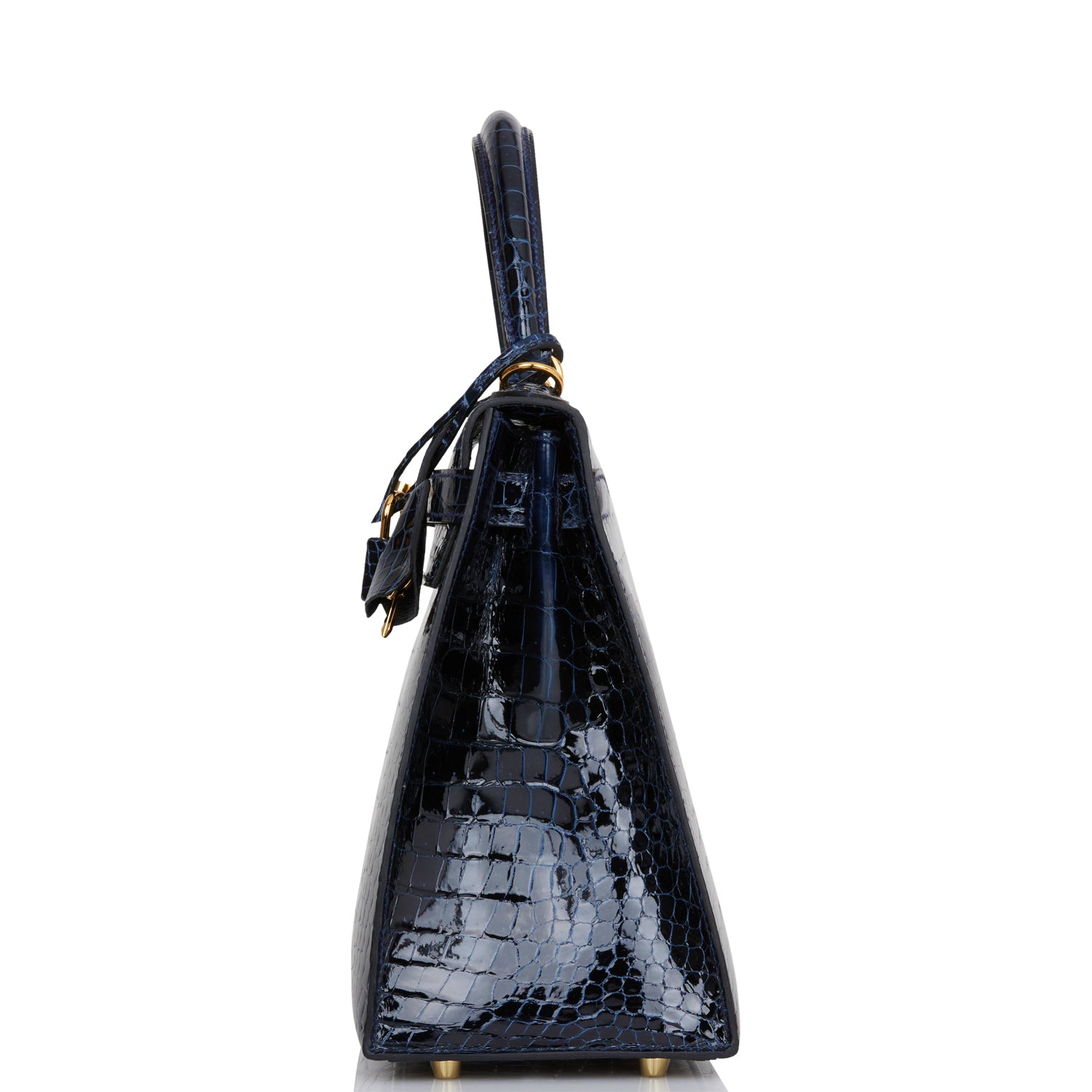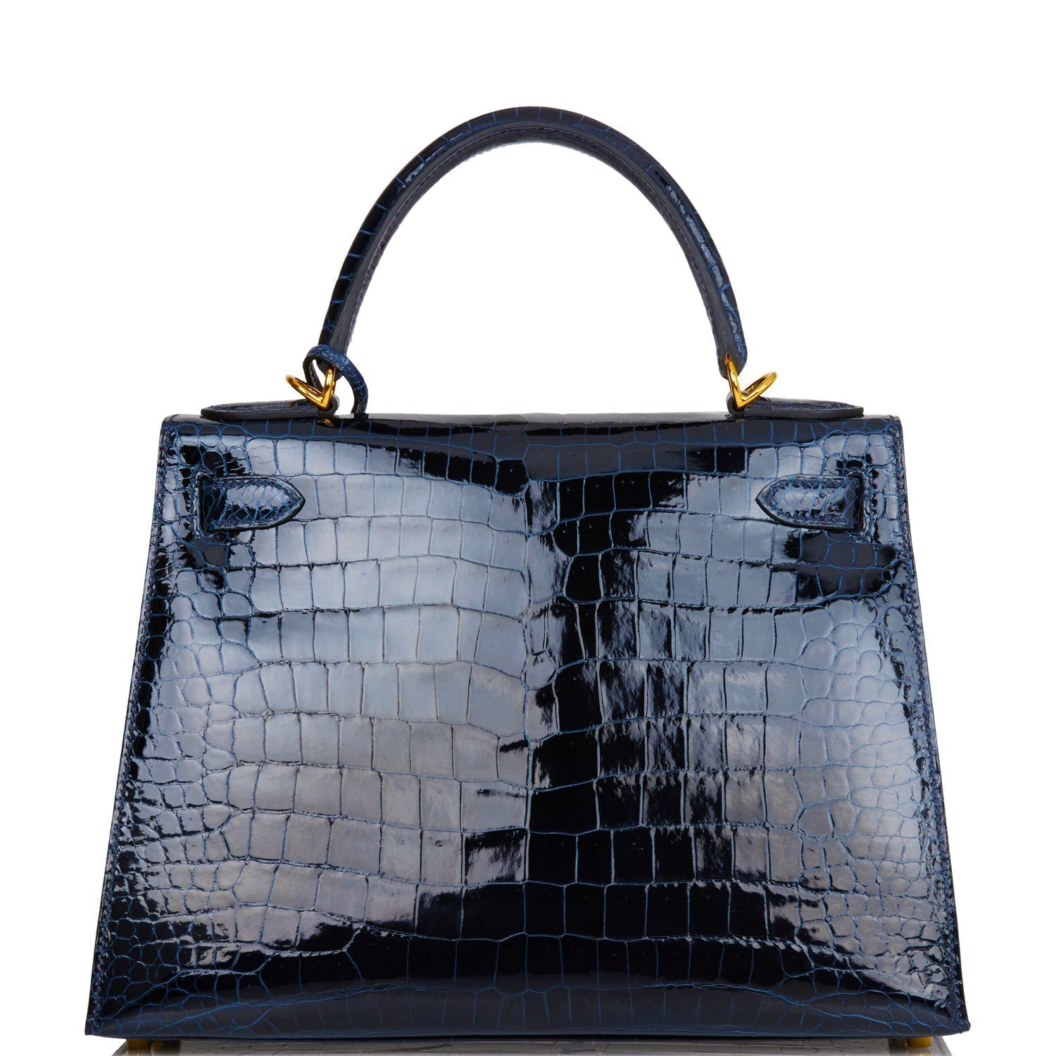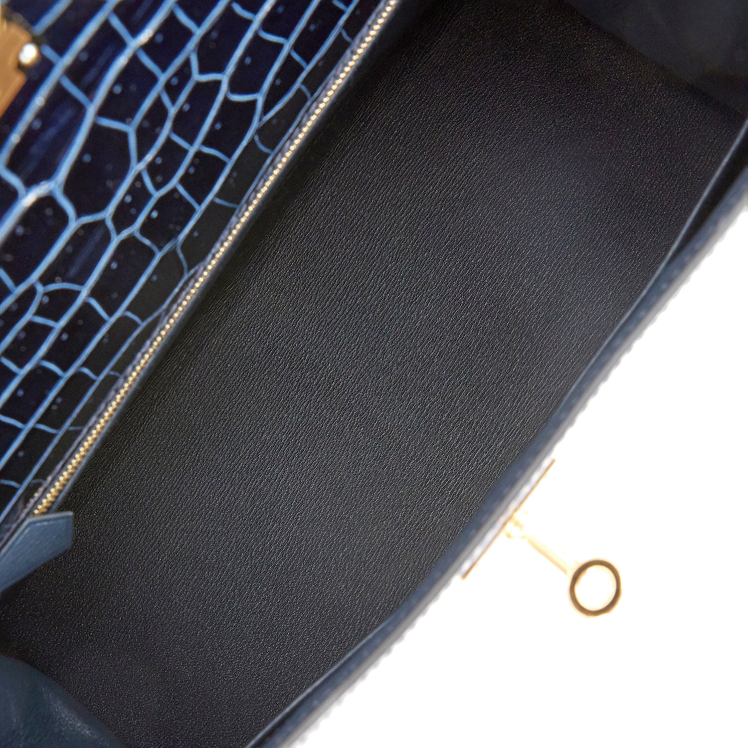 Hermes Kelly 28 Sellier Bleu Baltique Shiny Porosus Crocodile Gold Hardware