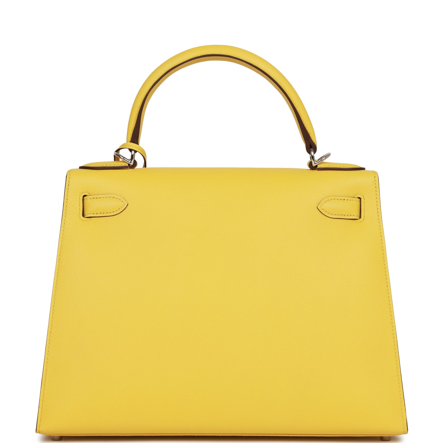 This Kelly Sellier is of Jaune de Naples epsom leather with palladium hardware and has tonal stitching, a front toggle closure, a clochette with lock and two keys, a single rolled handle and an optional shoulder strap.