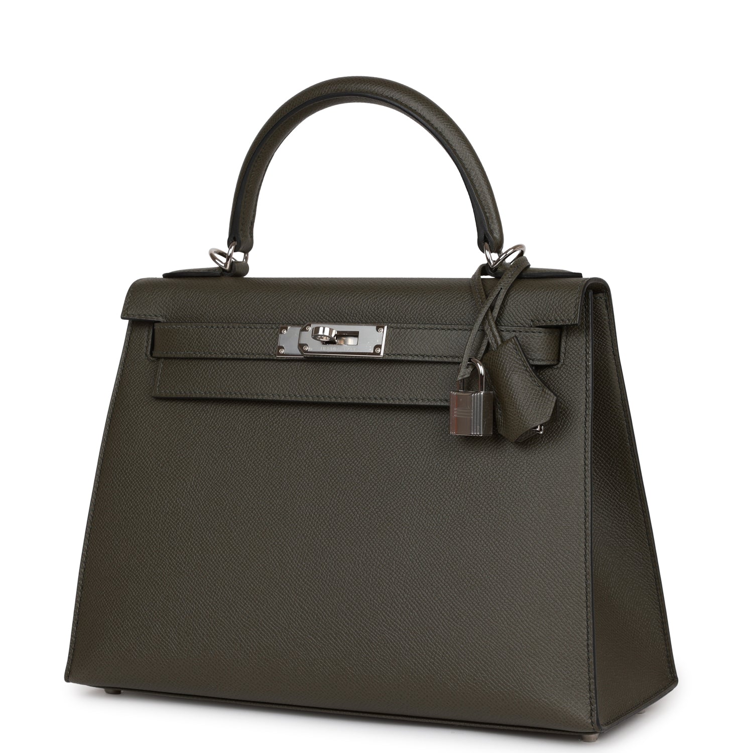 Hermes Kelly 28 Sellier Vert De Gris Epsom Palladium Hardware