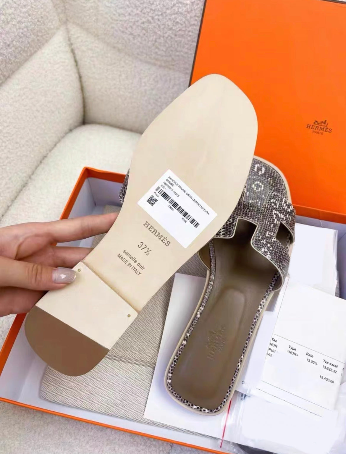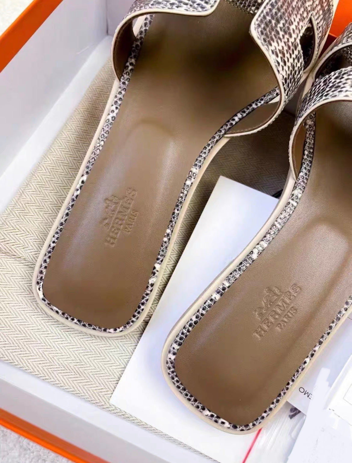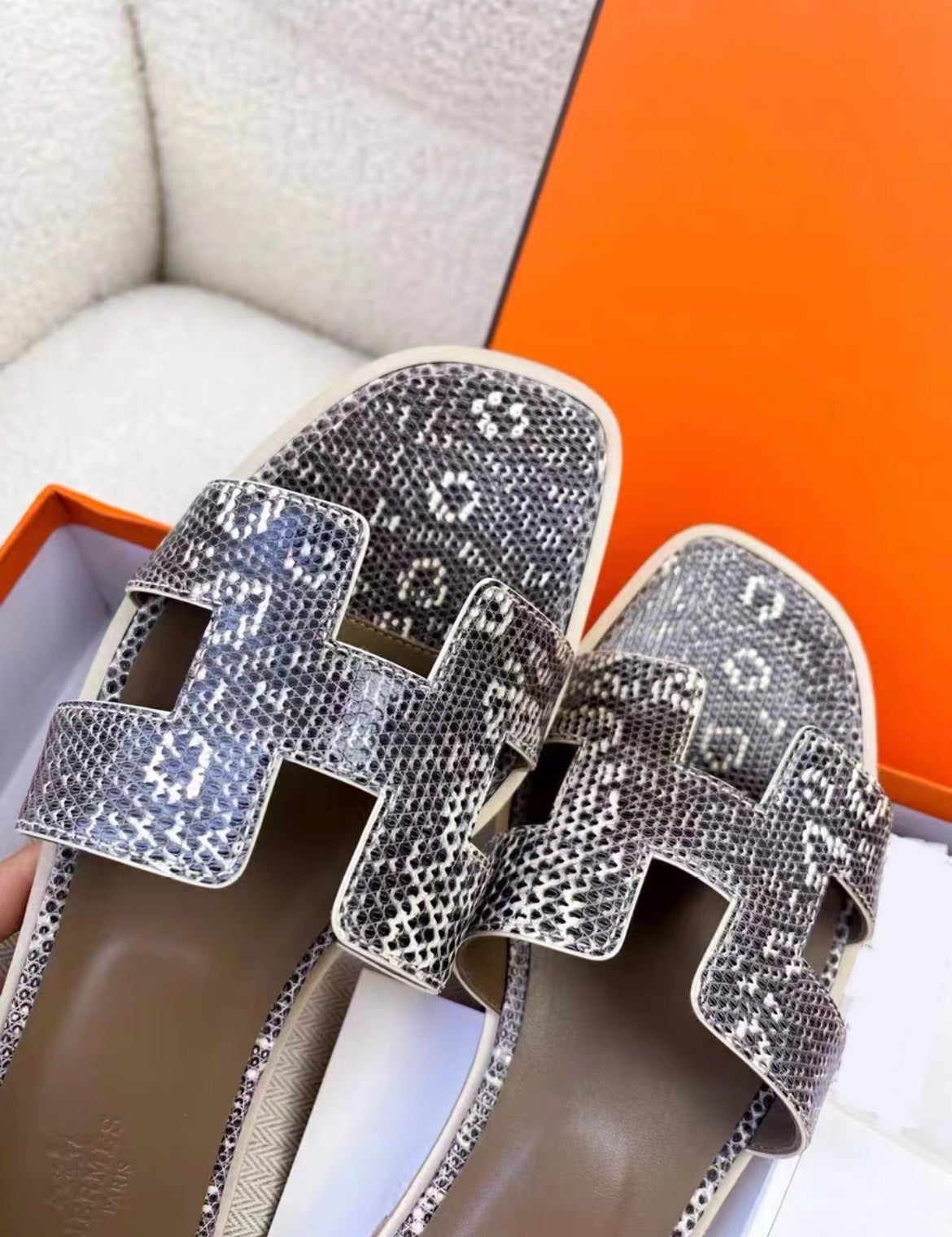 HERMES Lizard Oran Sandals 37.5 Ombre