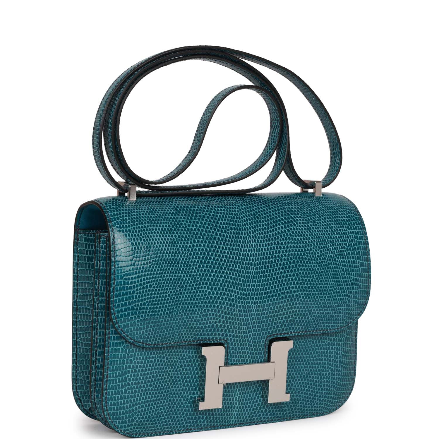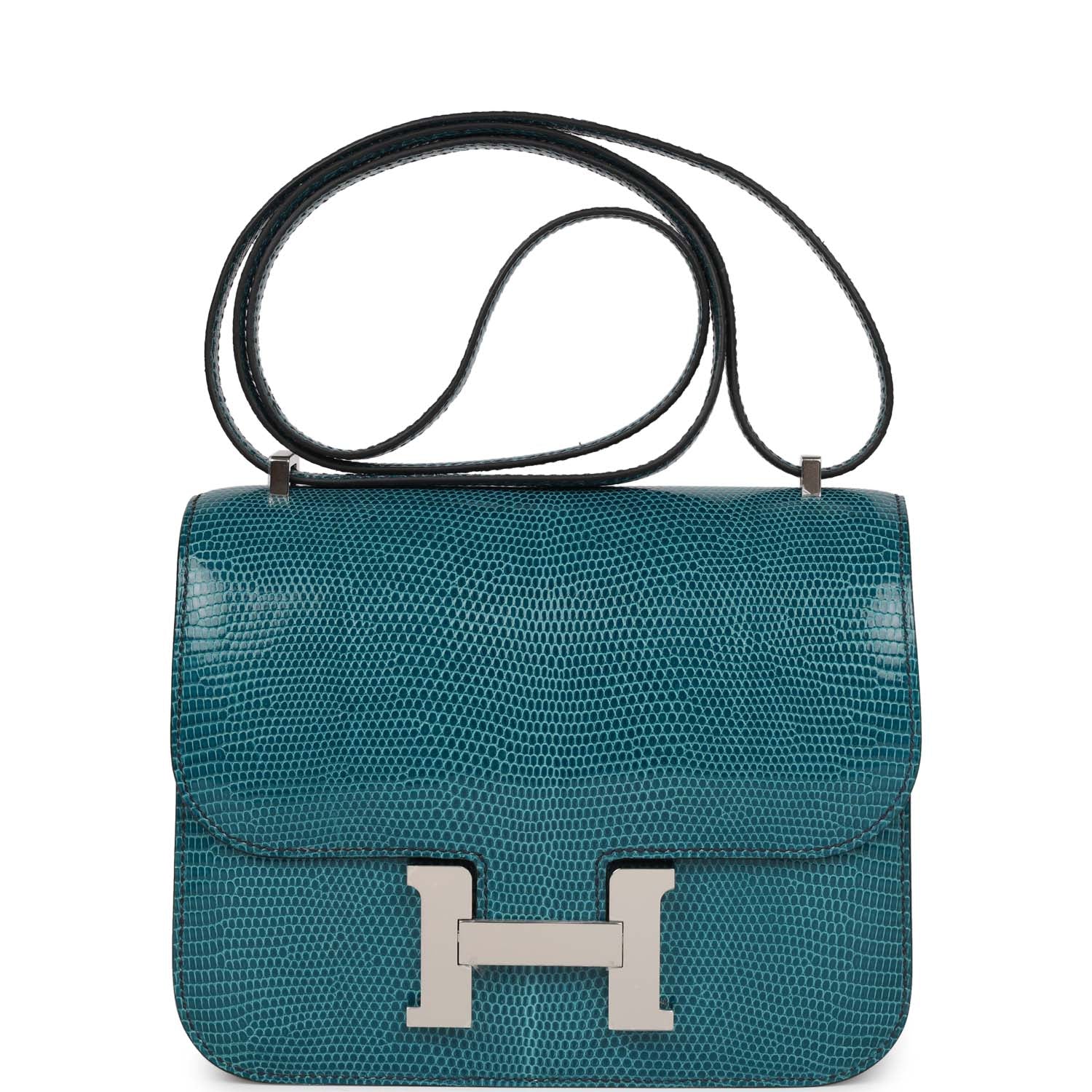 Hermes Mini Constance 18 Bleu Petrole Lizard Niloticus Palladium Hardware