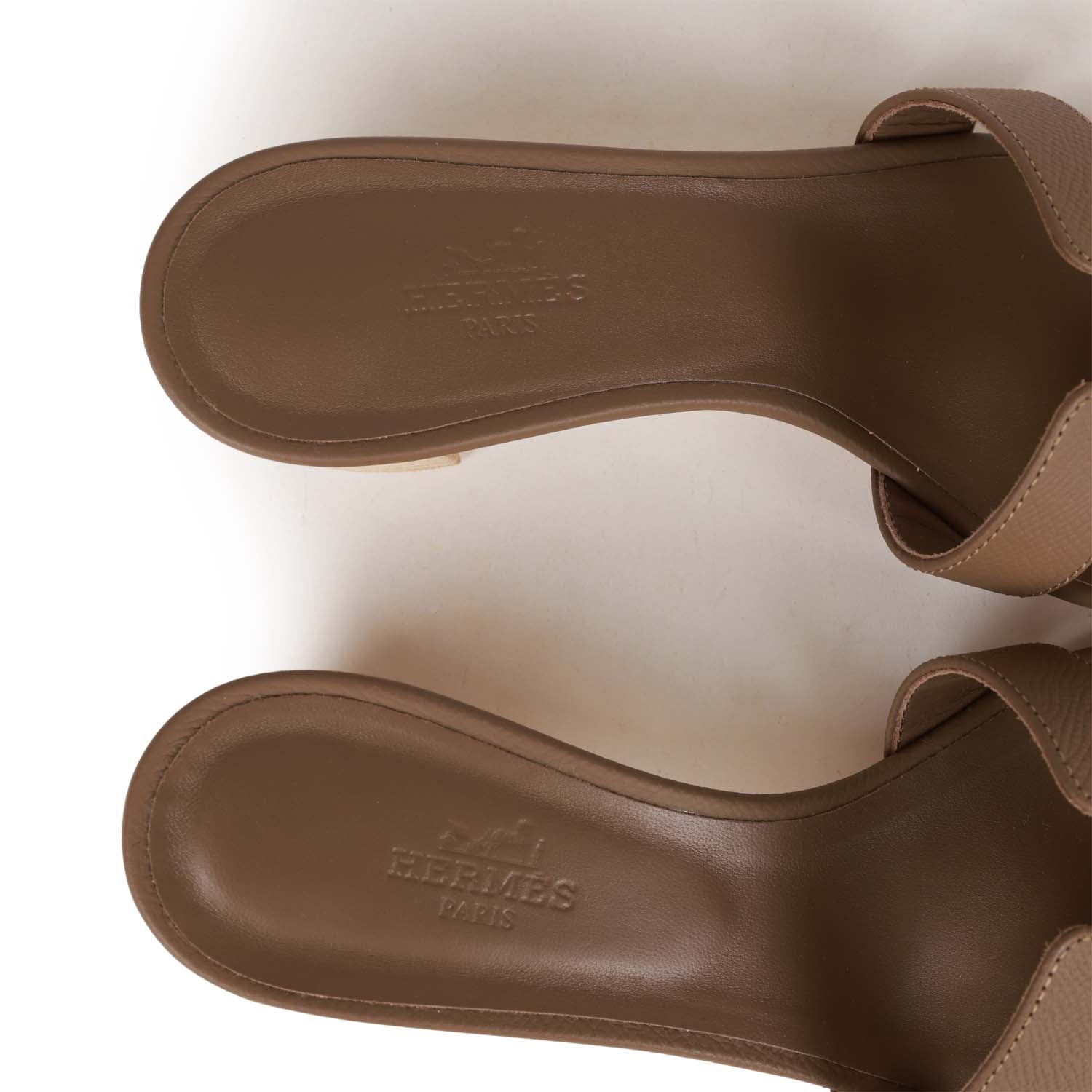 Hermes Oasis Sandals Etoupe Epsom Block Heels 35