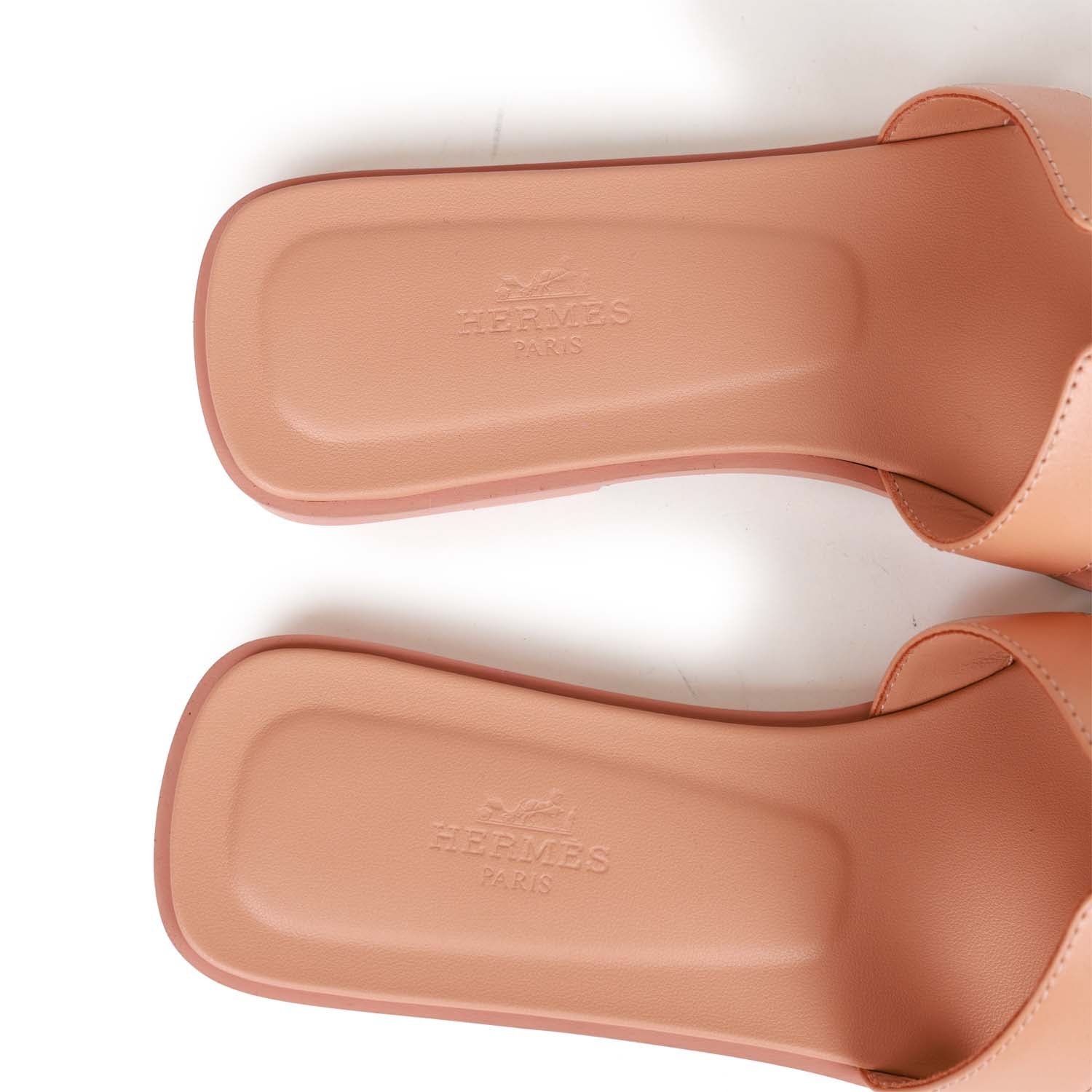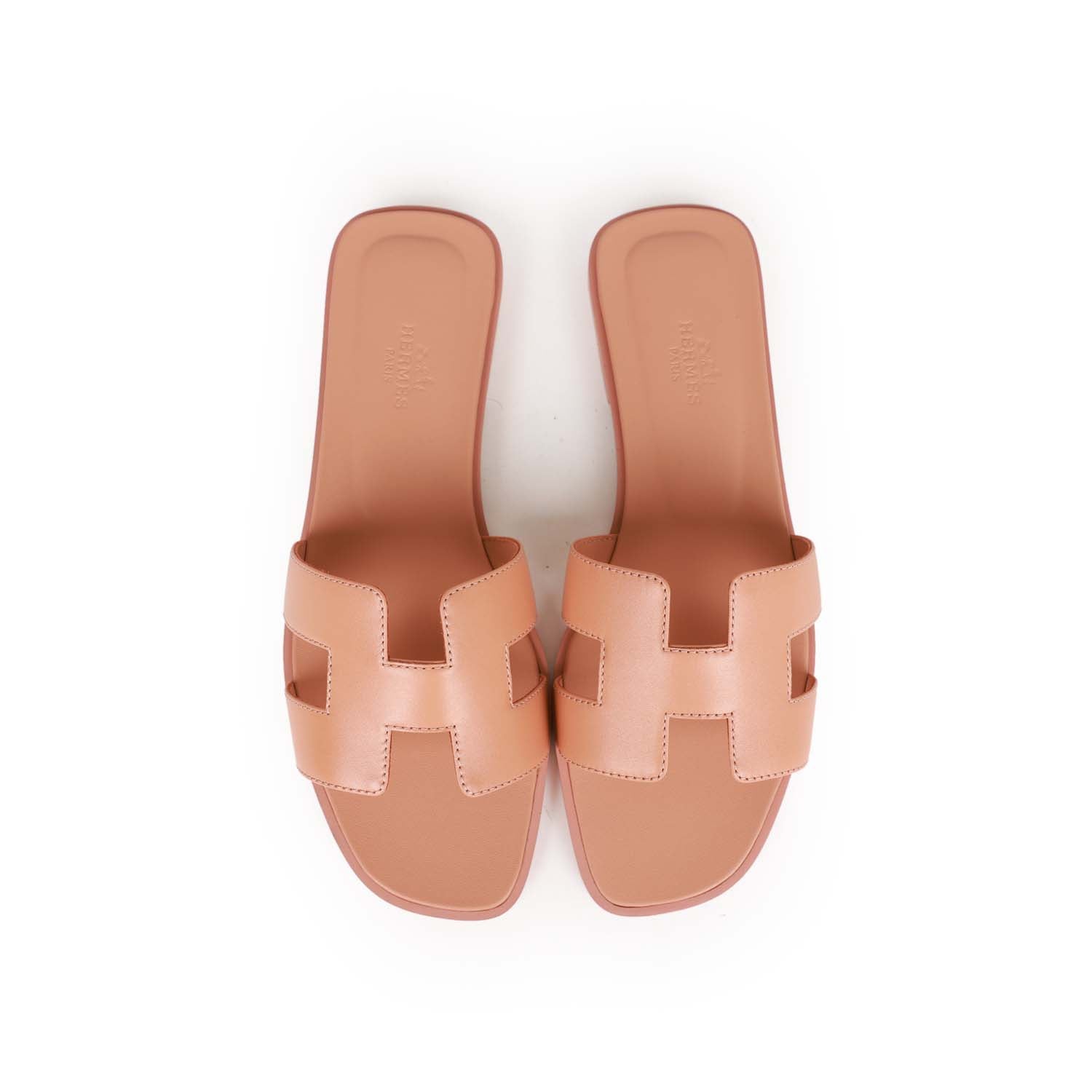 This pair of Oran Sandals are in Granit Rose calfskin with the iconic H crossover strap and granit rose leather soles.