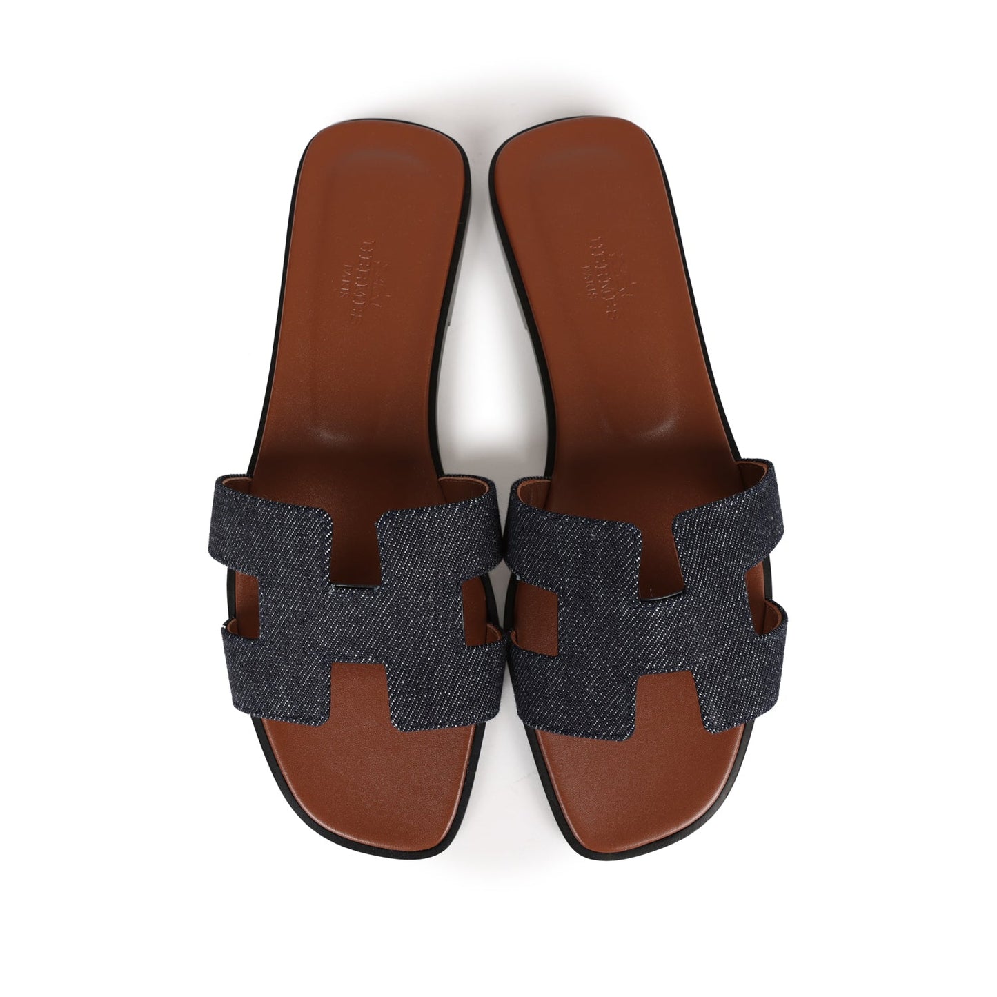 Hermes Oran Sandals Bleu Brut Denim 38 EU