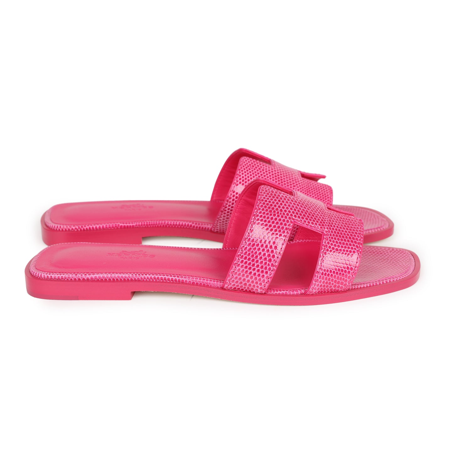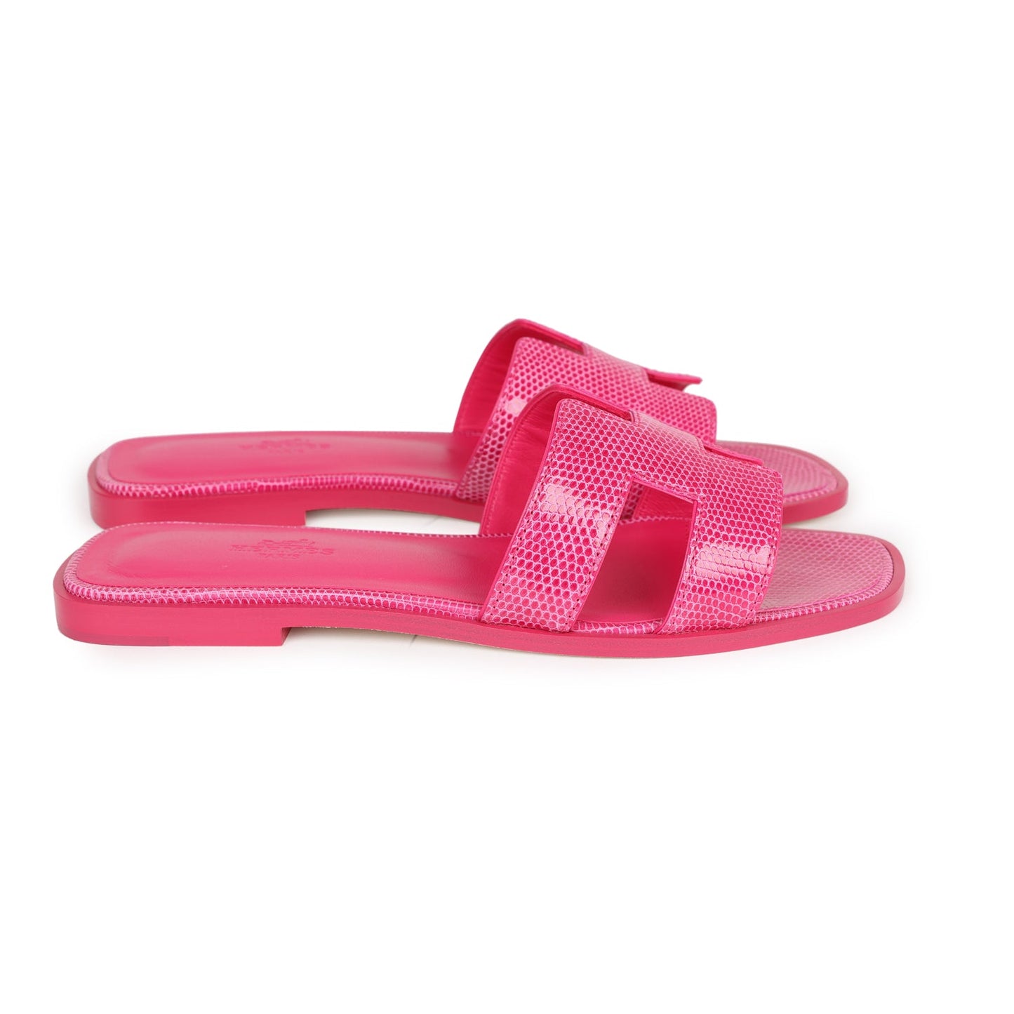 Hermes Oran Sandals Rose Flash Lizard 37