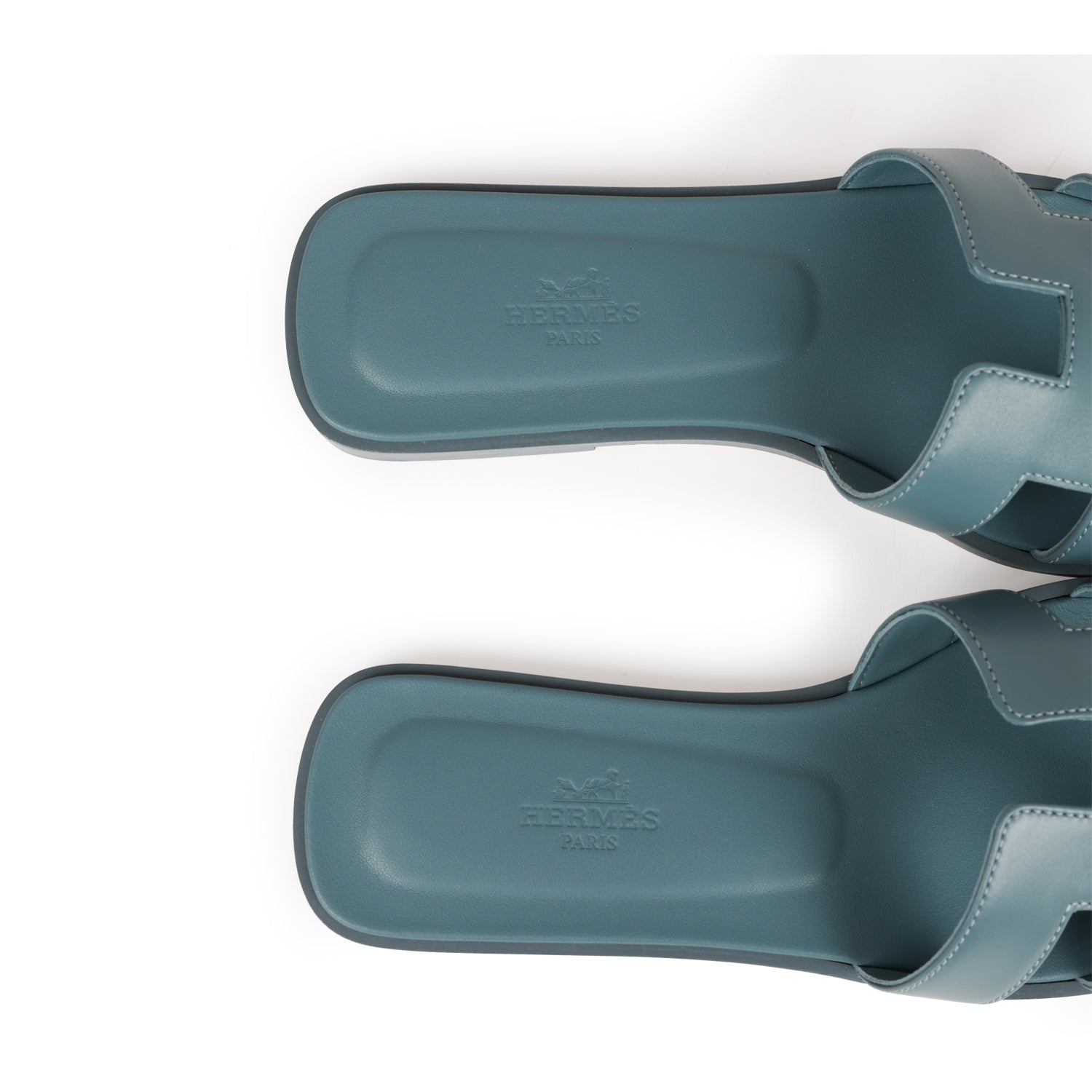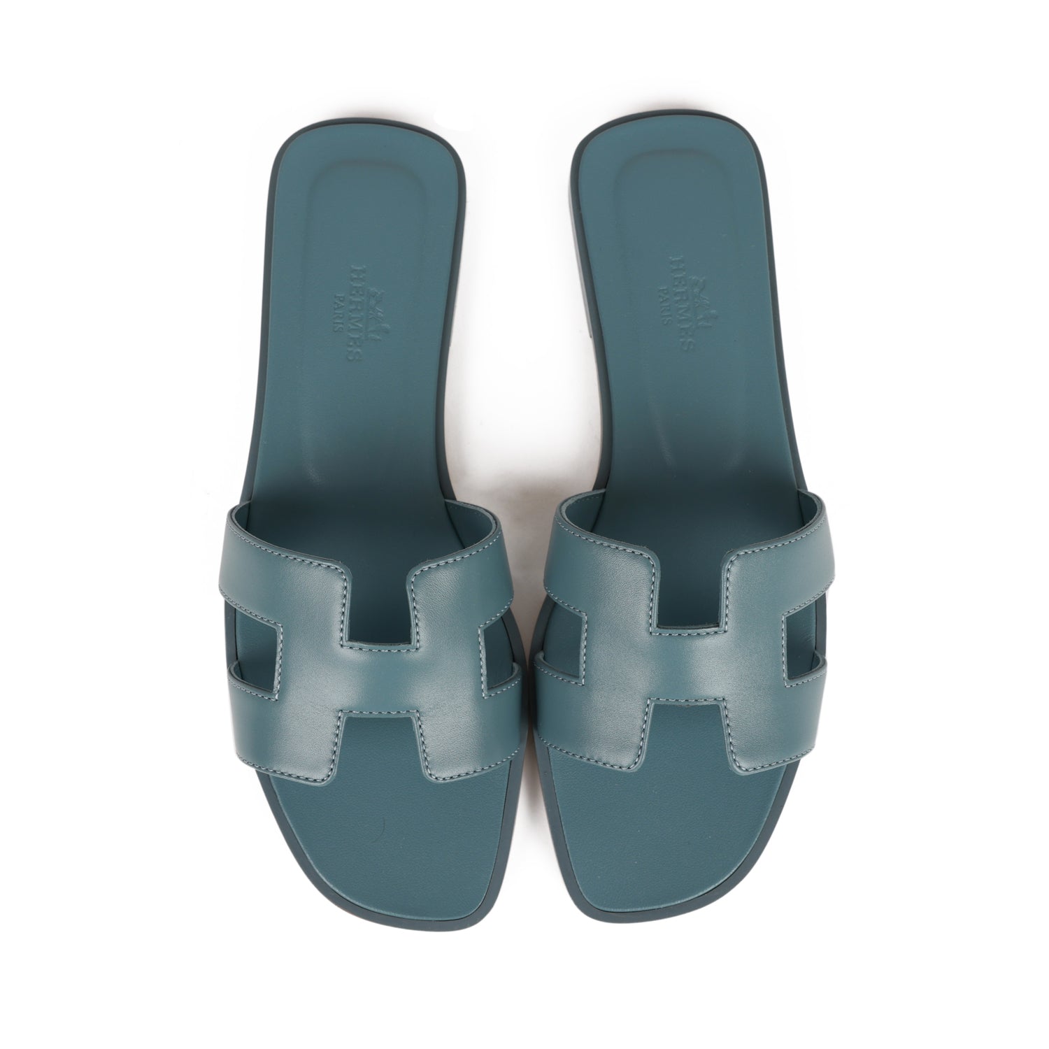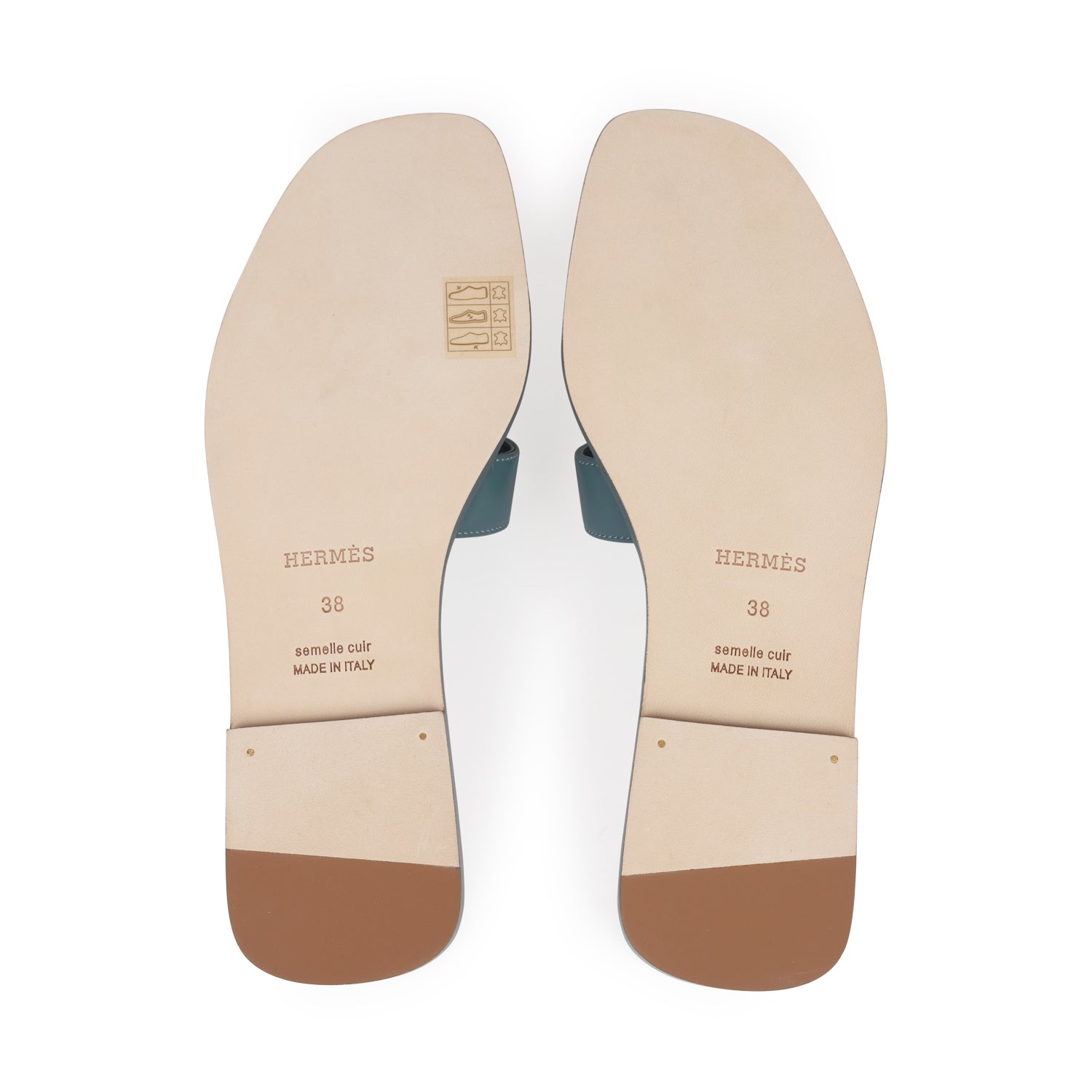 Hermes Oran Sandals Bleu Pinede Box Calfskin 38