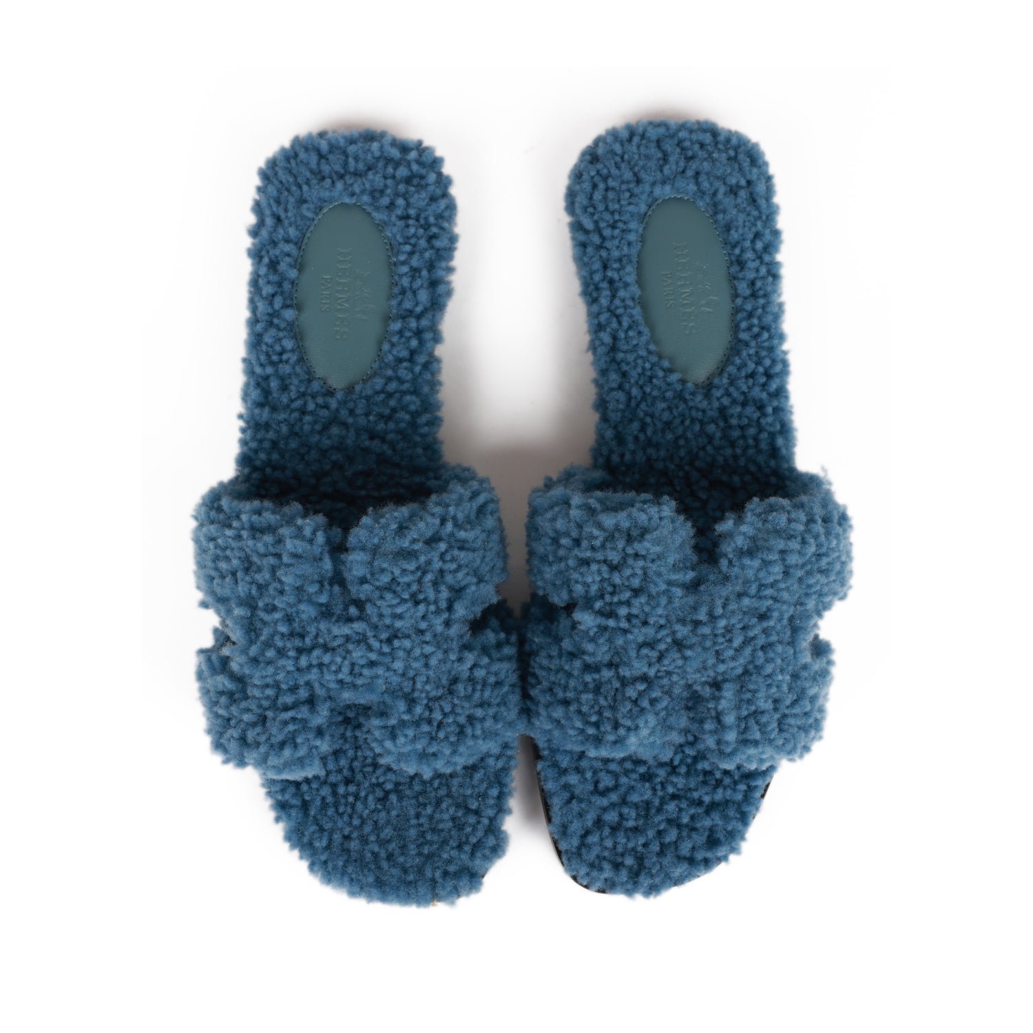 Hermes Oran Sandals Bleu Woolskin 36.5