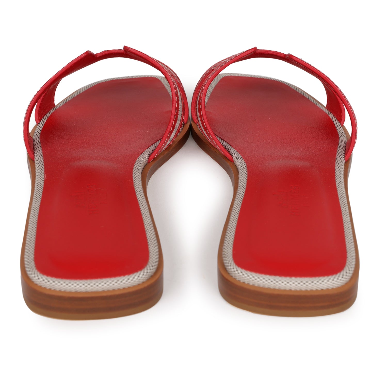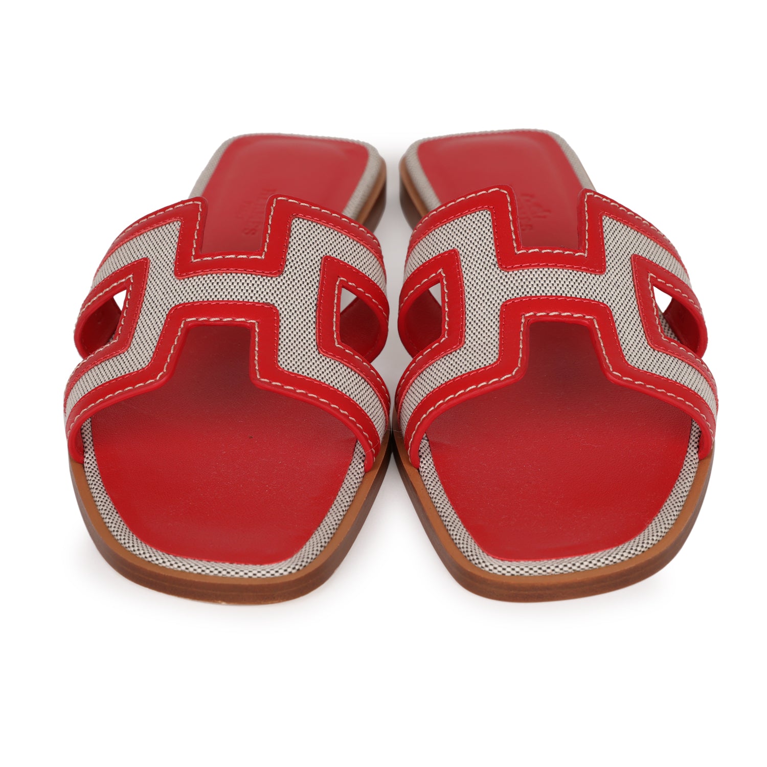 Hermes Oran Sandals Prunoir Rouge Canvas 38.5