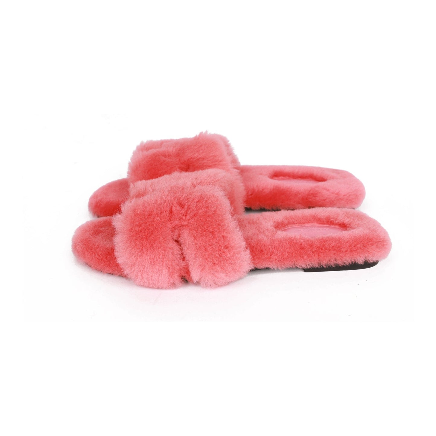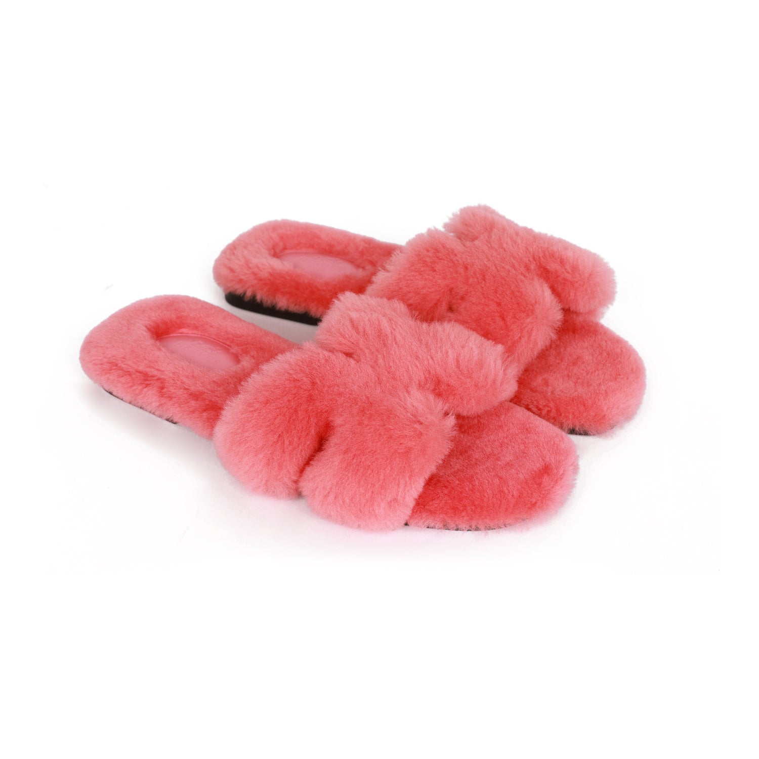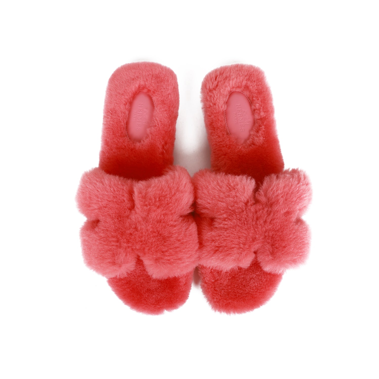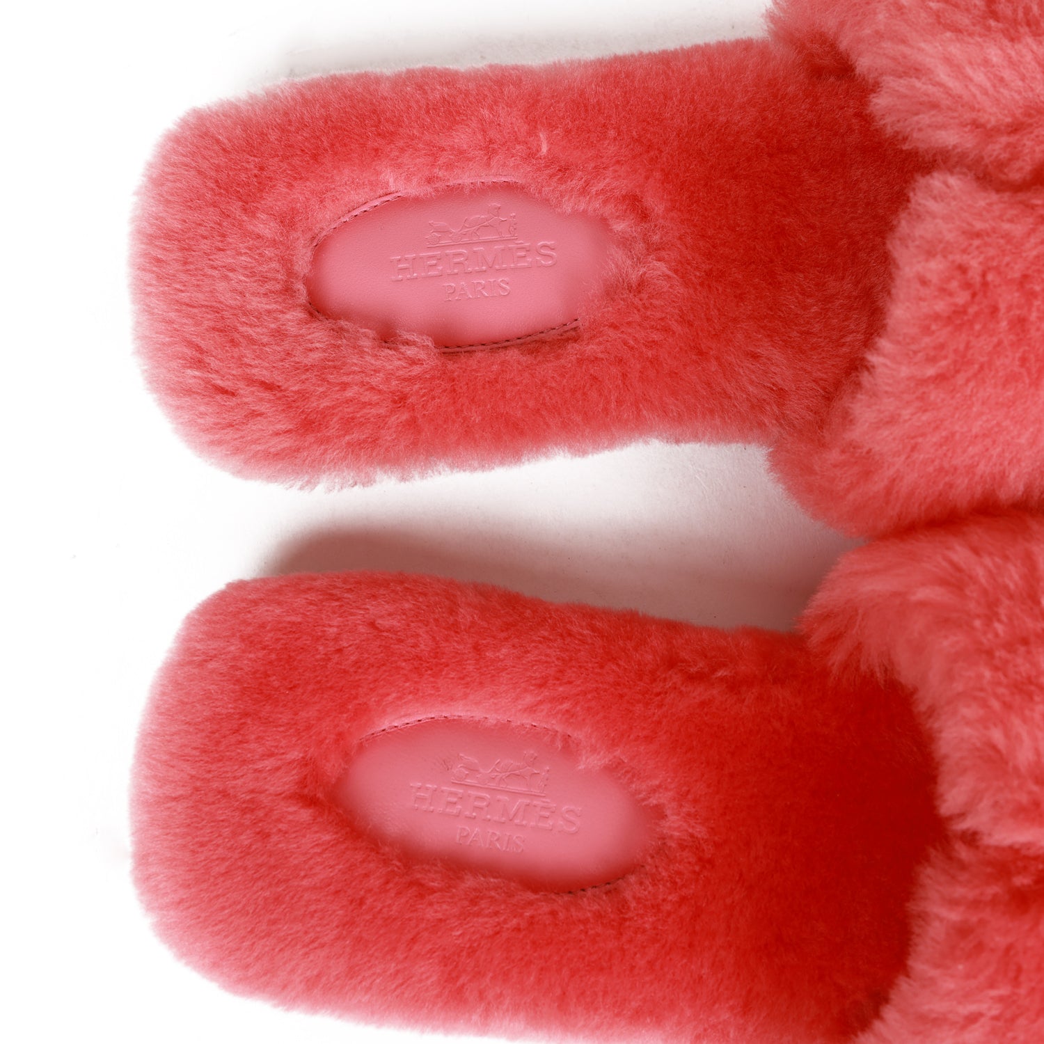 Hermes Oran Sandals Rose Du Désert Woolskin 37