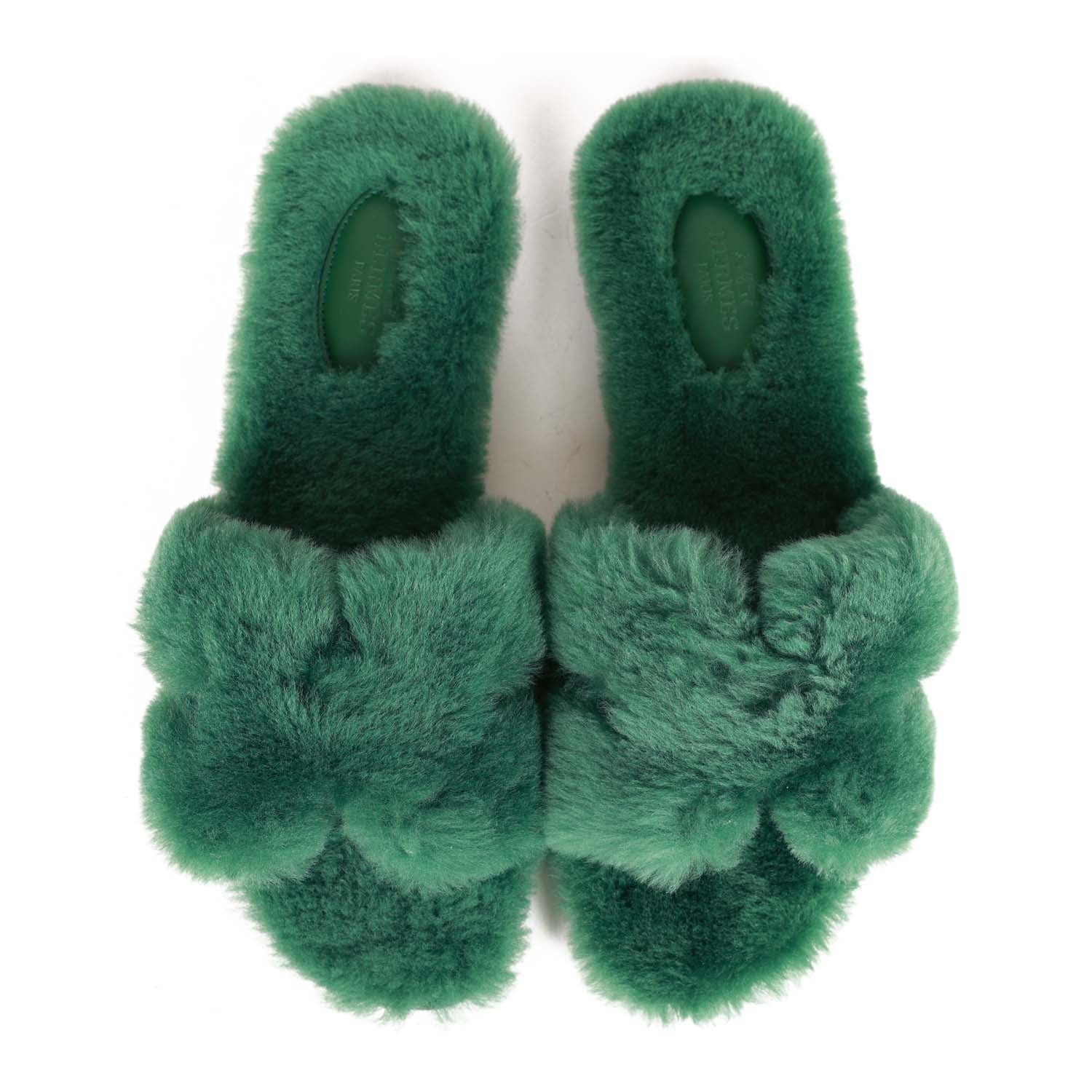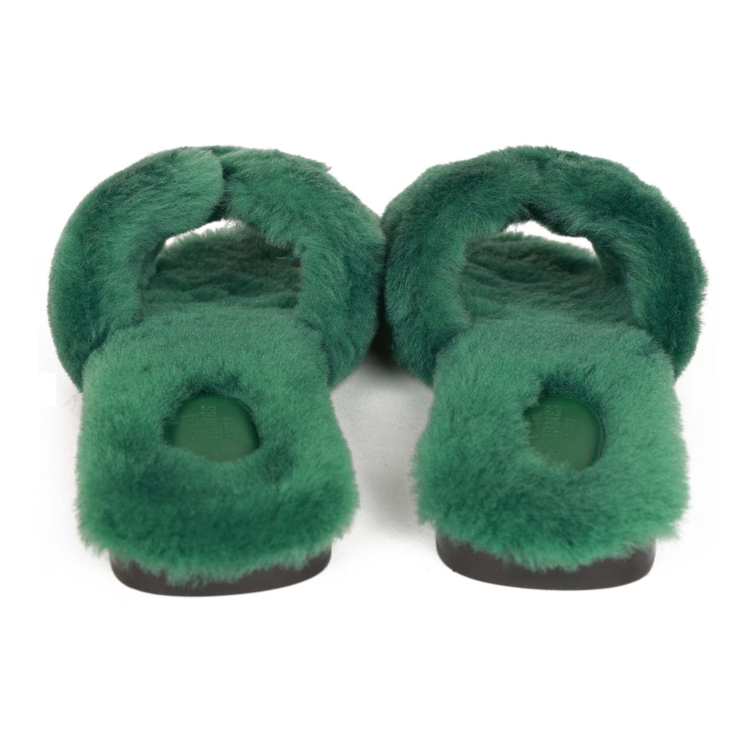 Hermes Oran Sandals Vert Anglais Woolskin 38.5