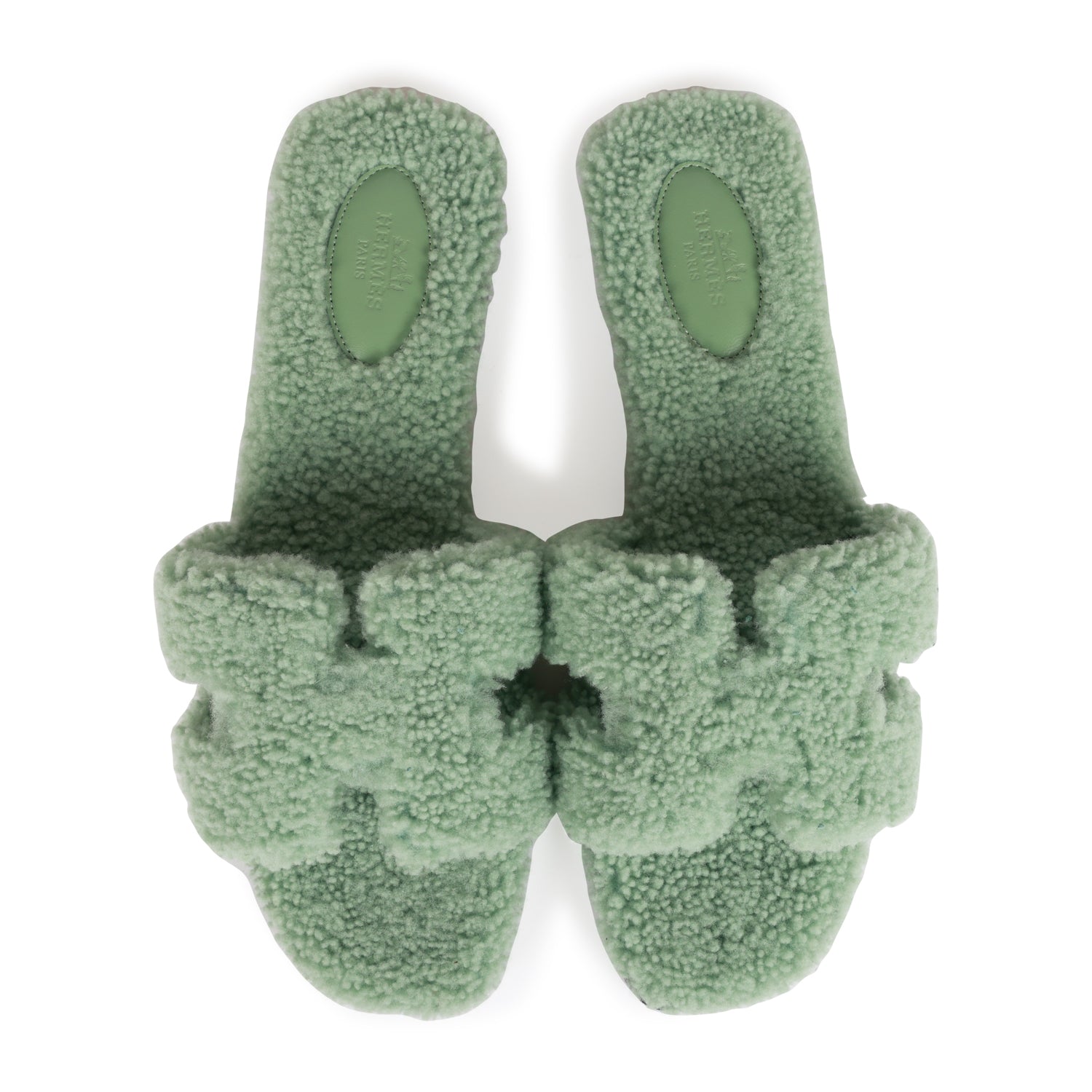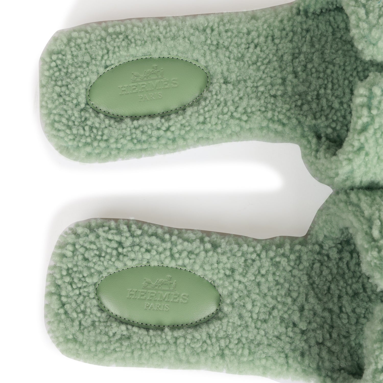 Hermes Oran Sandals Vert D'eau Woolskin 41