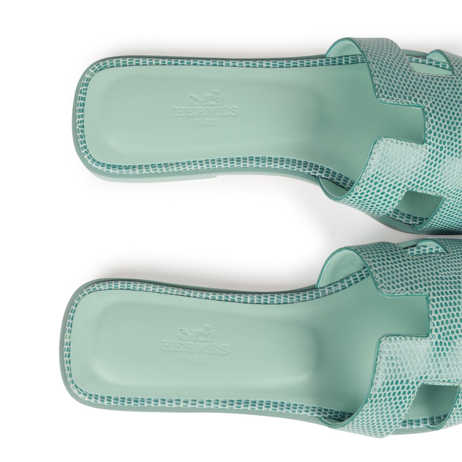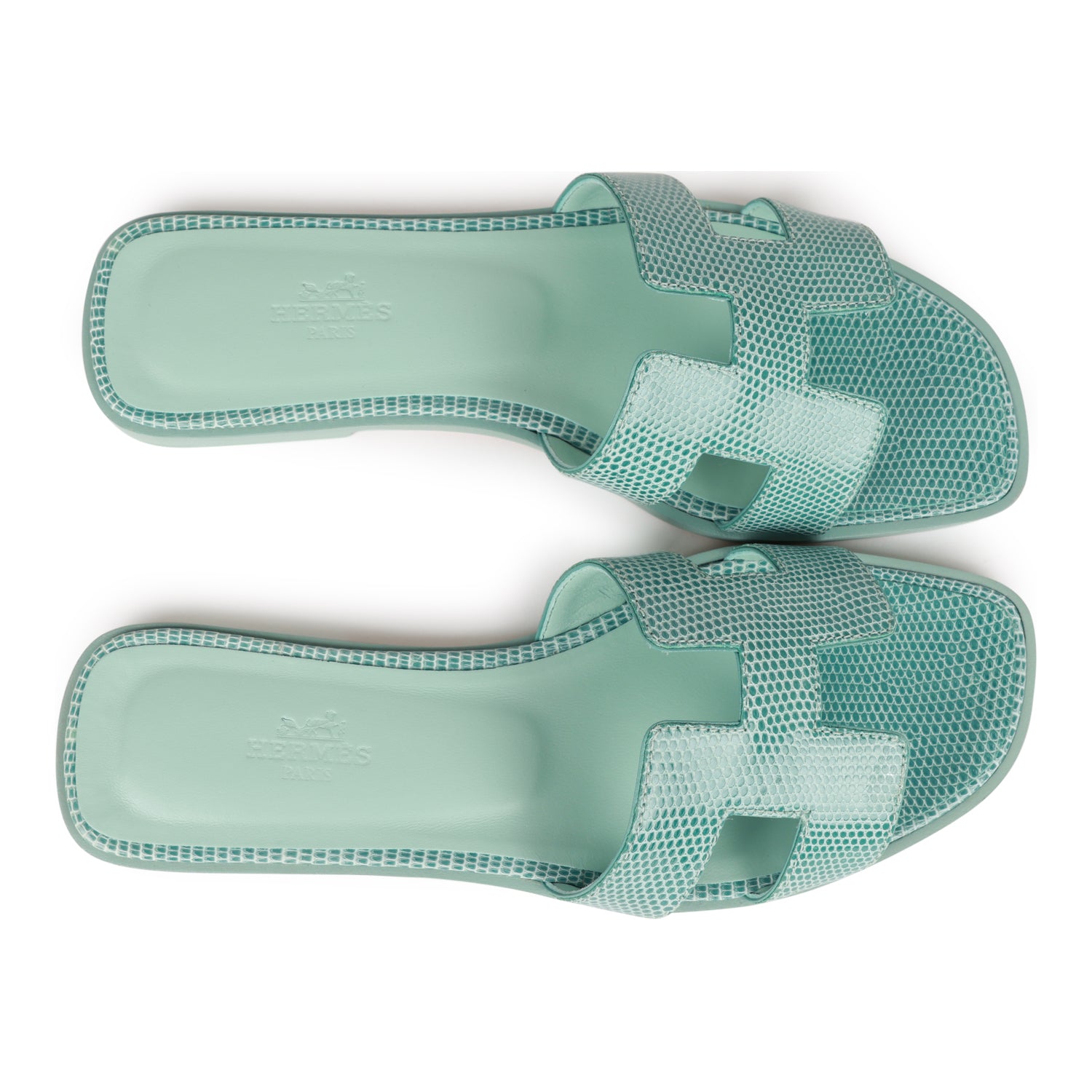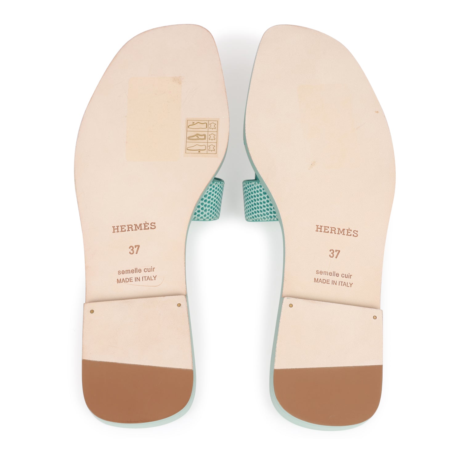 Hermes Oran Sandals Vert Embrun Lizard 37