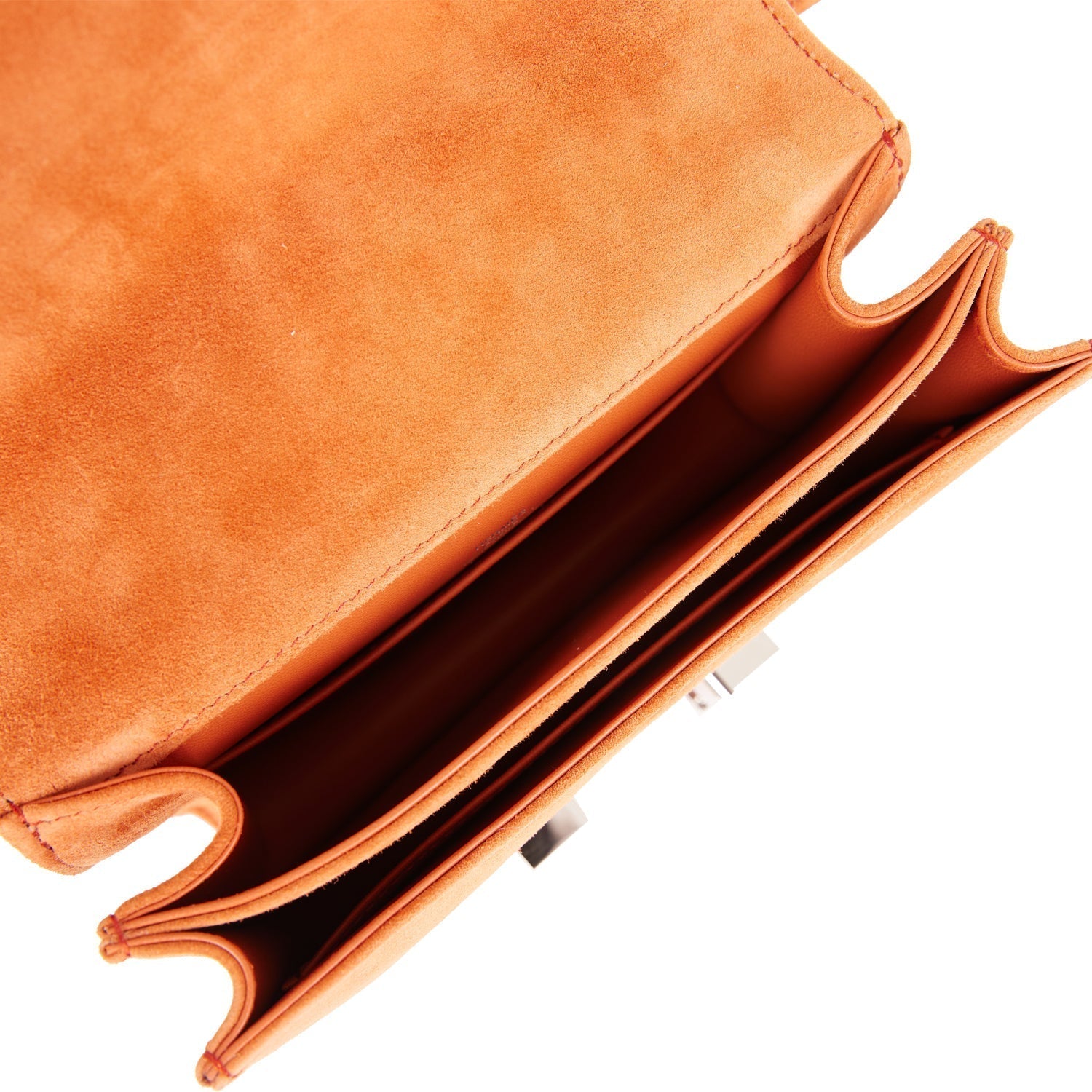 This Constance is in Paprika doblis (suede) leather with palladium hardware and has tonal stitching, a metal "H" snap lock closure and adjustable shoulder strap.