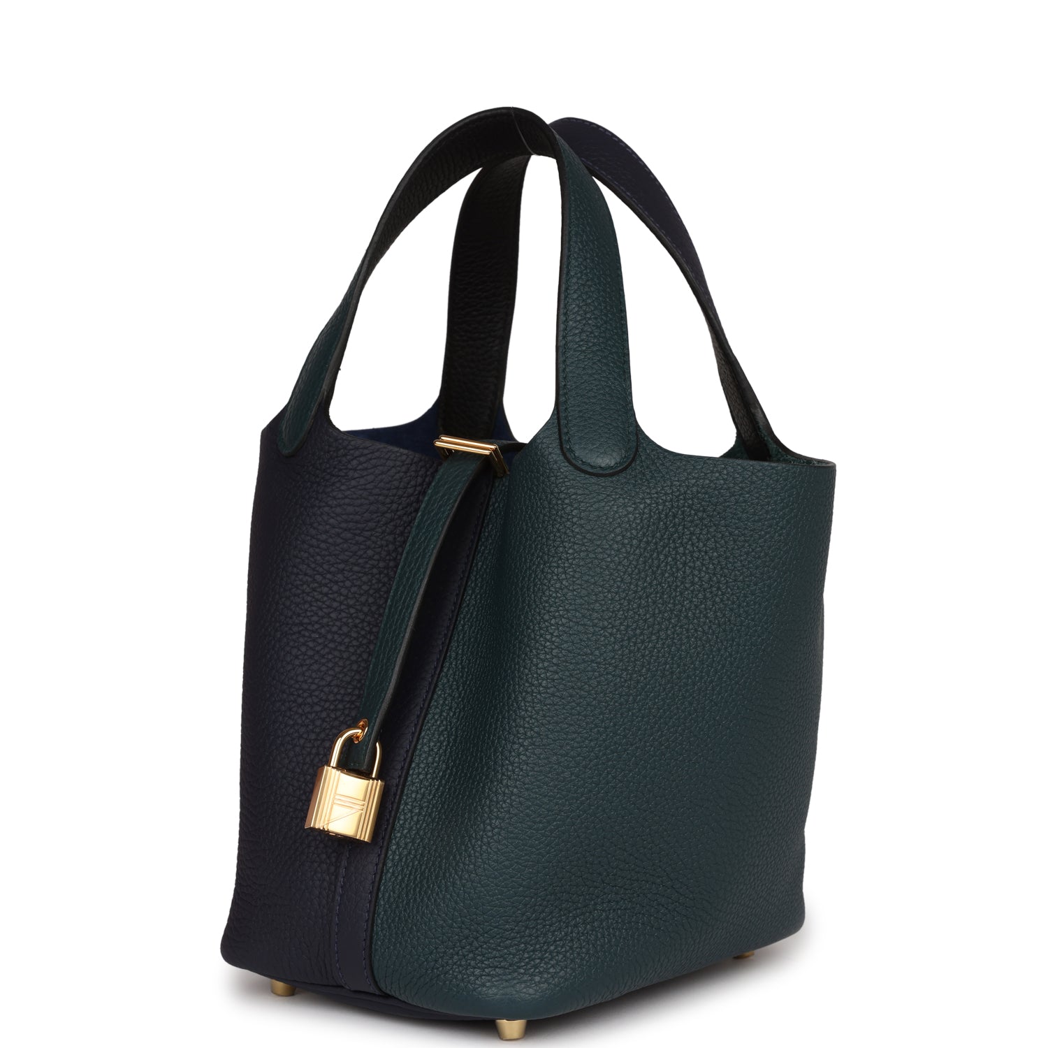 Hermes Picotin Lock 18 Casaque Bleu Nuit and Vert Cypress Clemence Gold Hardware