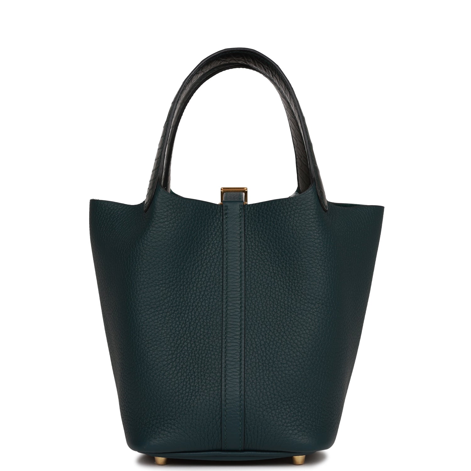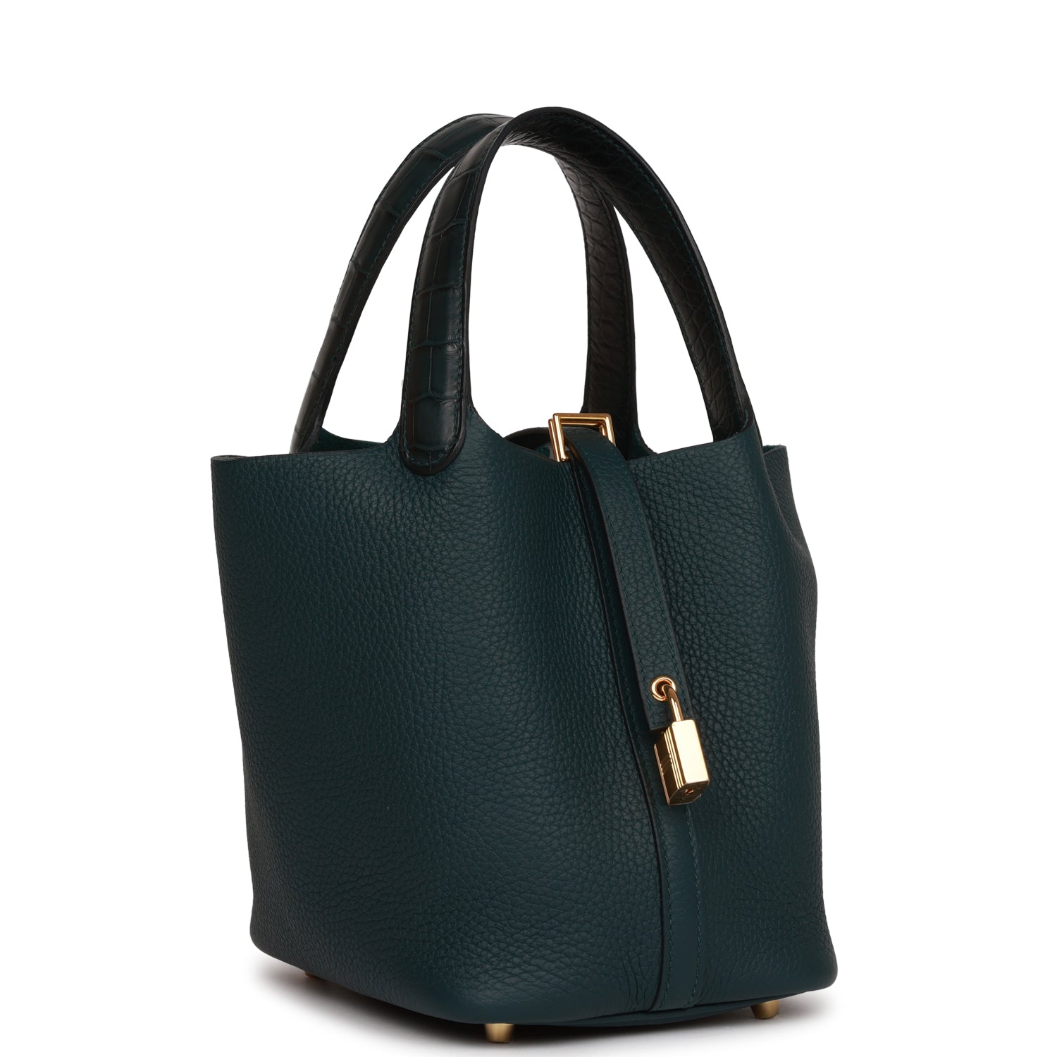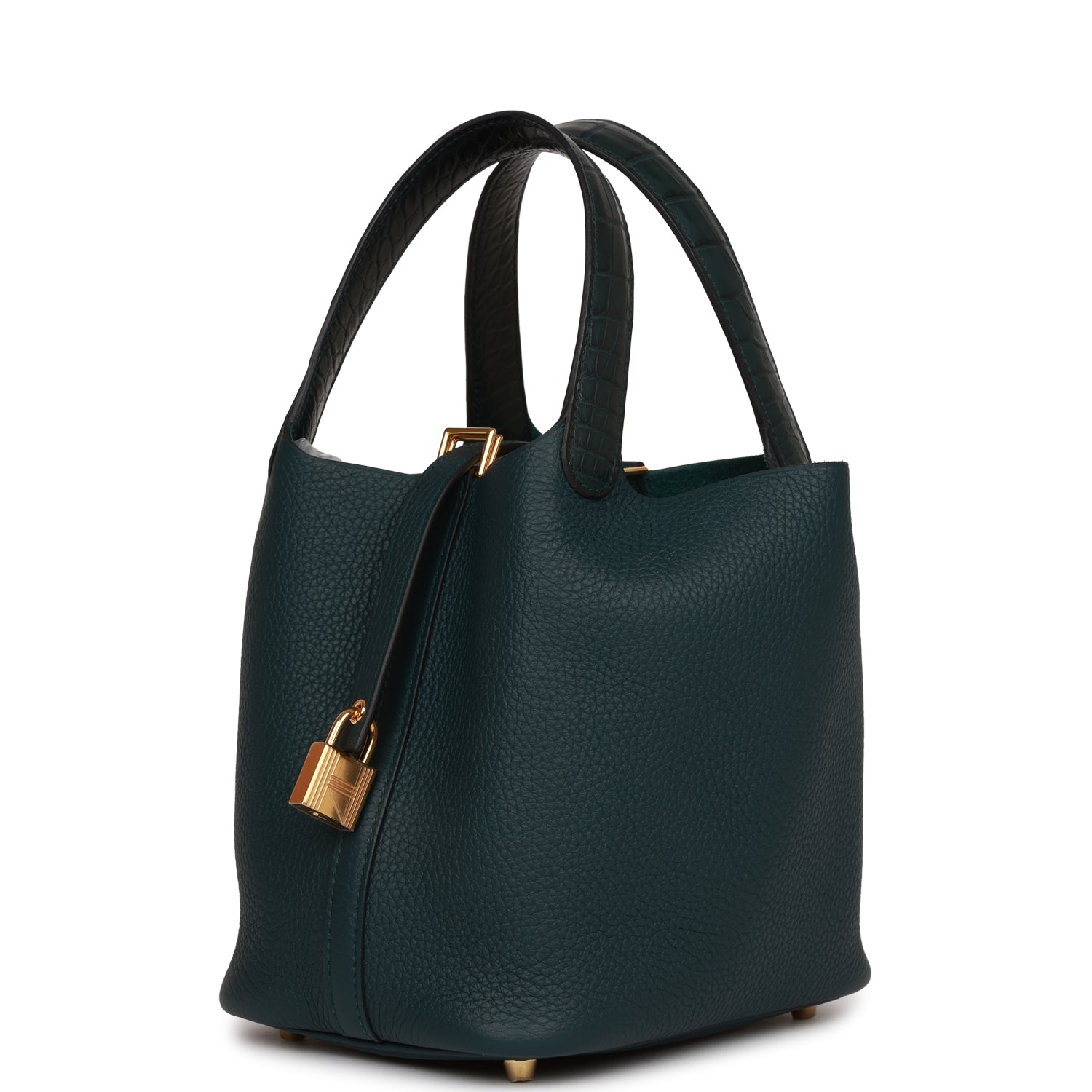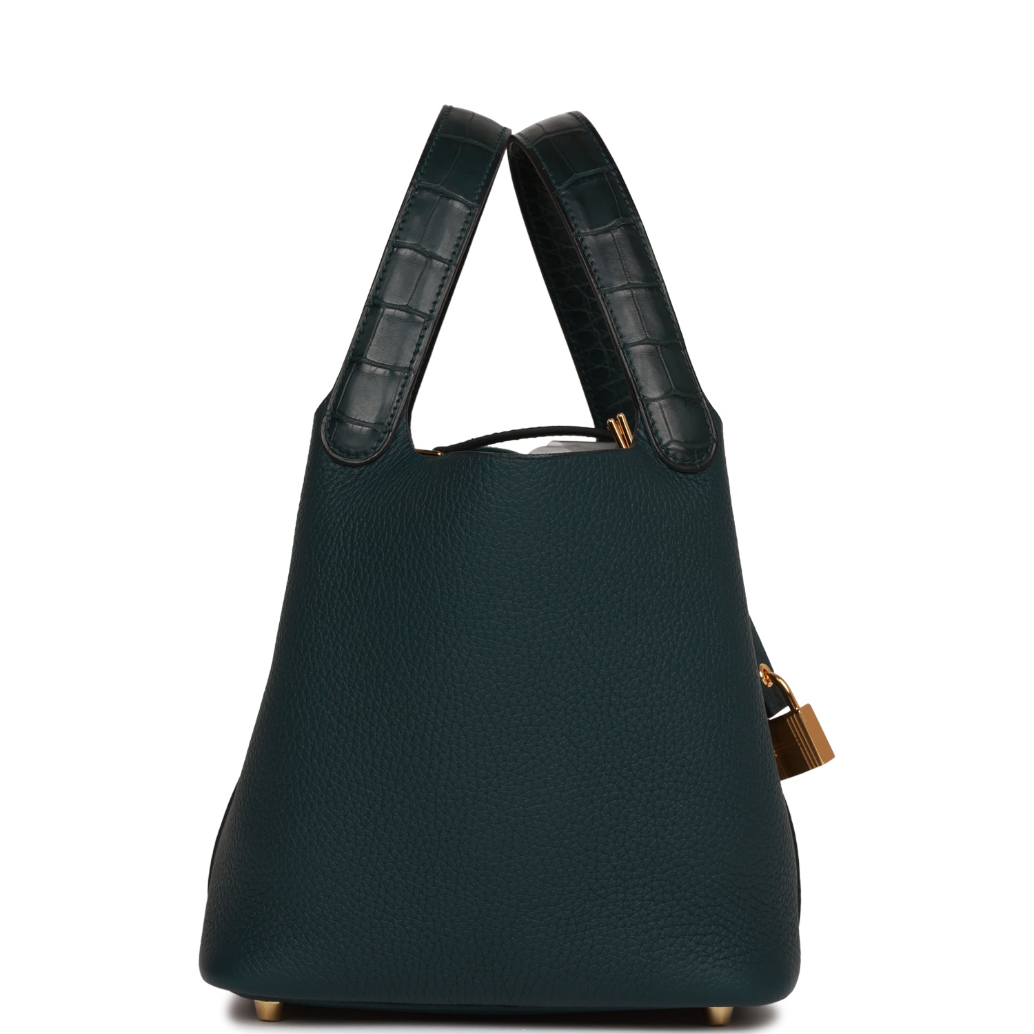 Hermes Picotin Lock 18 Vert Cypress Matte Alligator and Clemence Touch Gold Hardware