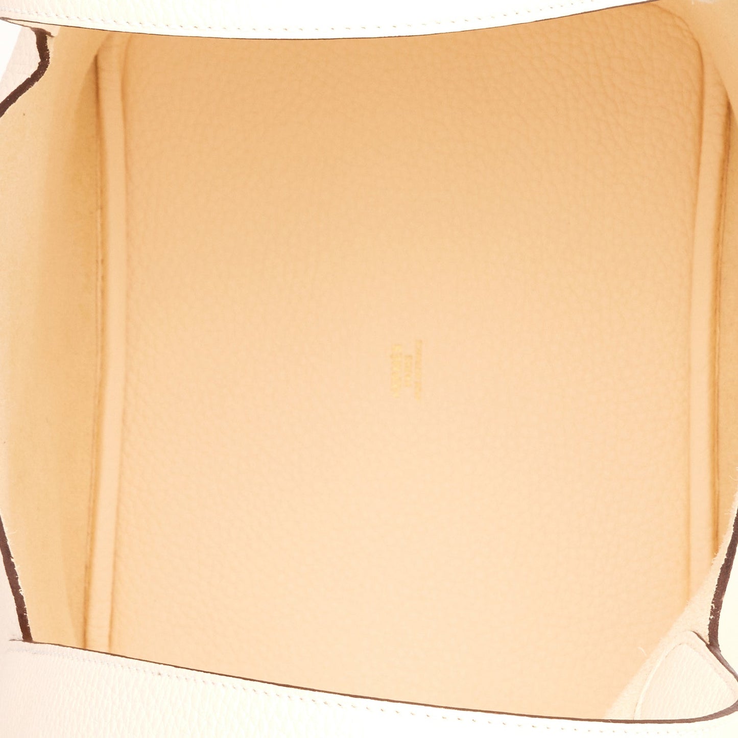 This Picotin is in Nata clemence leather with gold hardware and has tonal stitching with two top handles.