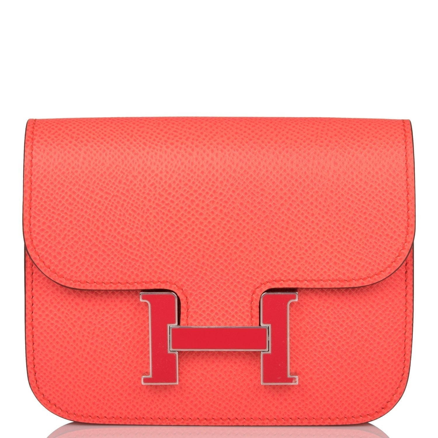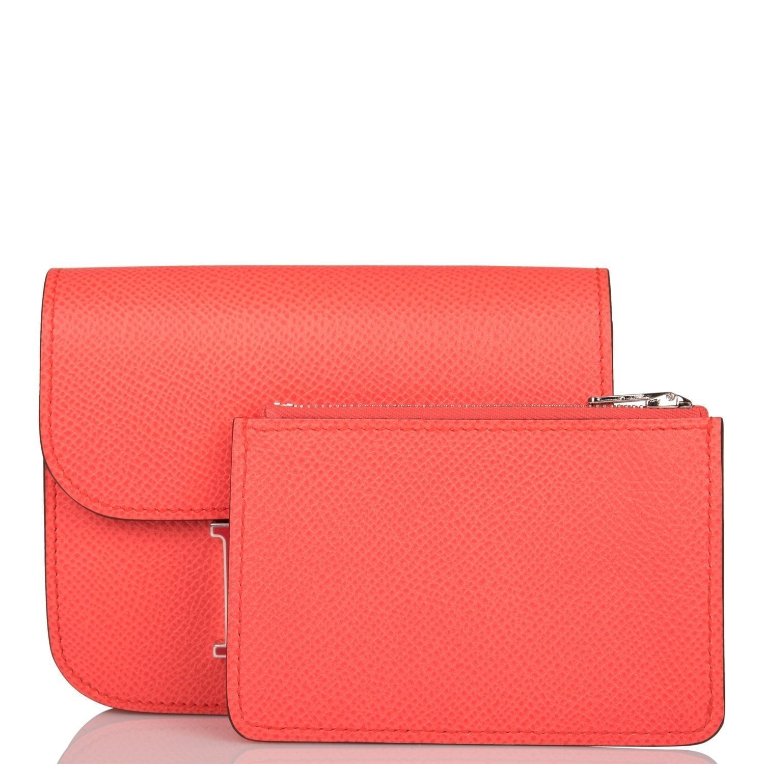 Hermes Rose Texas Epsom Constance Slim Wallet Palladium Hardware