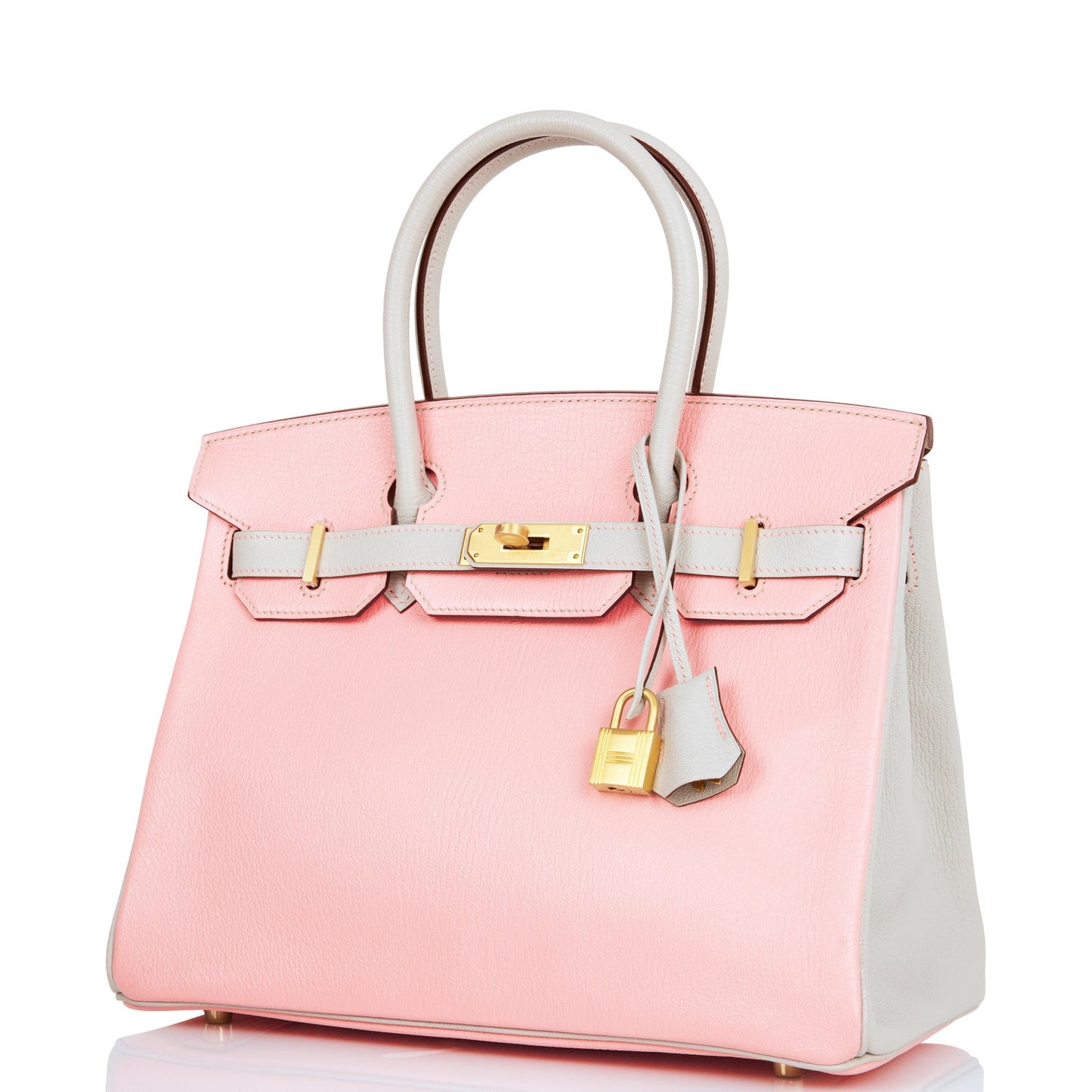 Hermes Special Order (HSS) Birkin 30 Rose Sakura and Gris Perle Chevre Brushed Gold Hardware