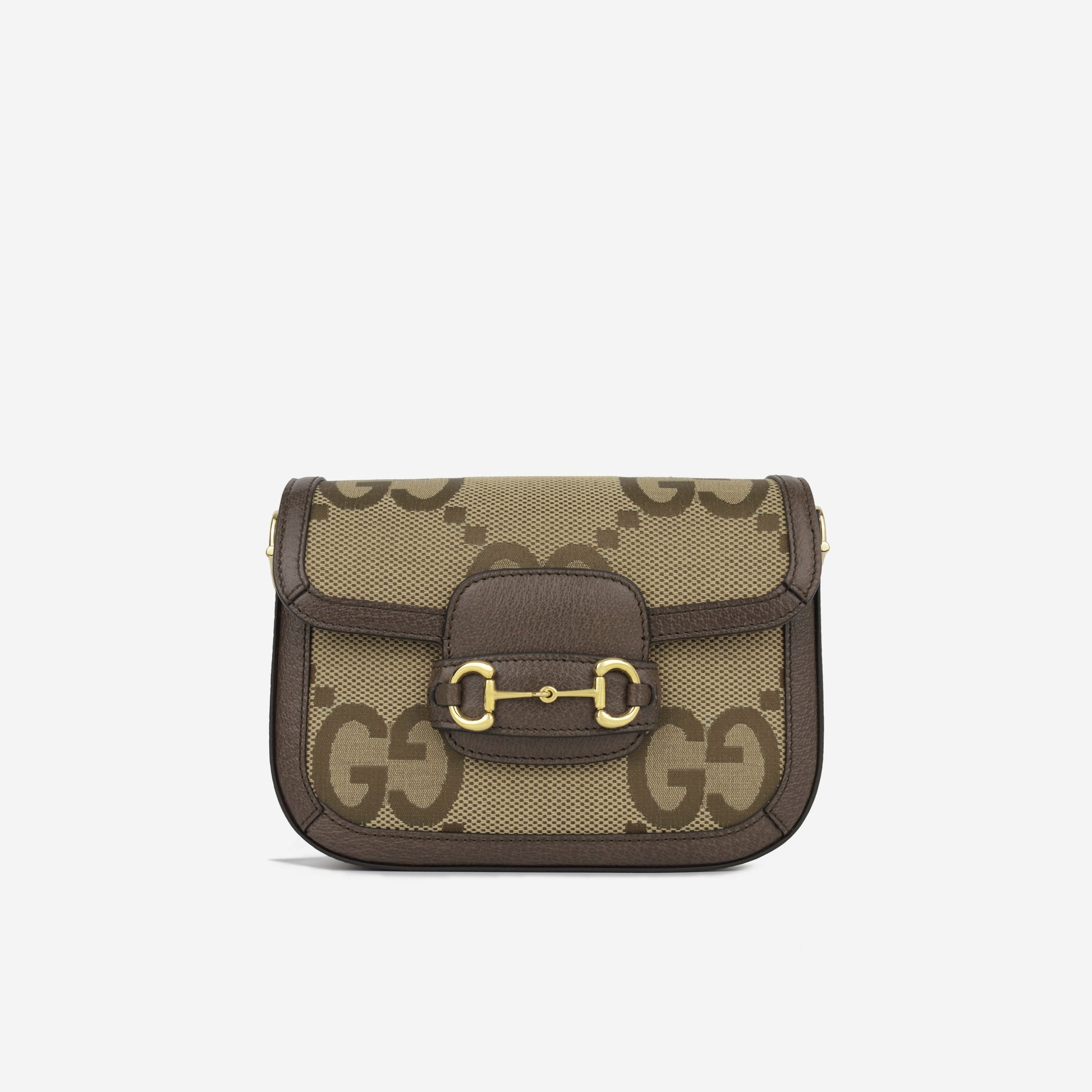 Part of the Gucci Horsebit 1955 collection, this shoulder bag stands out with its special hardware. The Jumbo GG monogram, a big version inspired by Guccio Gucci's initials, is prominently featured on the�dark brown and ebony canvas.�