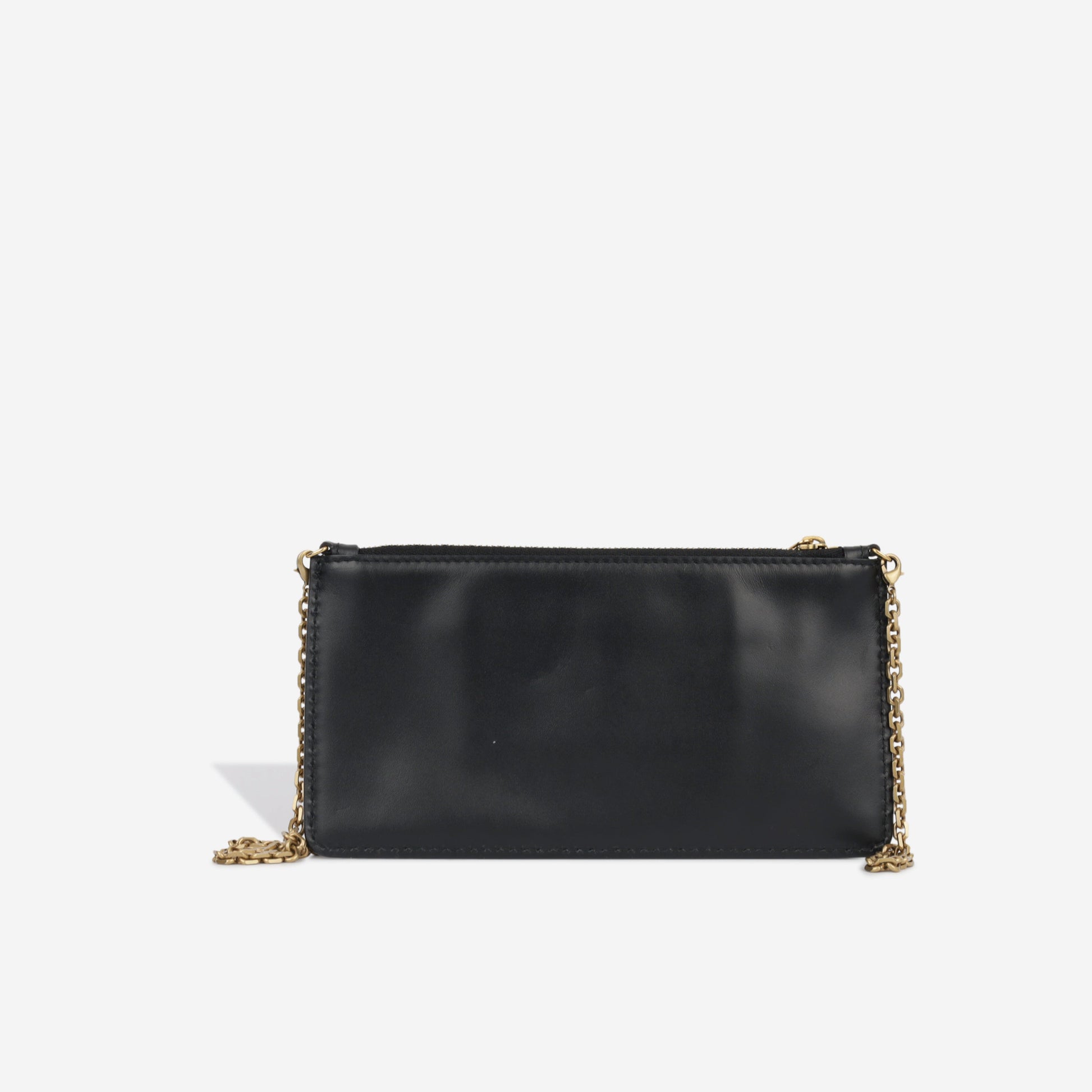 Under the creative direction of Maria Grazia Chiuri, Dior presents their ultimate It-Girl bag. The stunning, J'adior pouch in black calfskin is edgy but feminine, classic but contemporary. Designed to use as a phone case without the chain, or as a mini bag with the chain, the J'adior pouch is a well-worthy addition to any luxury handbag collection.