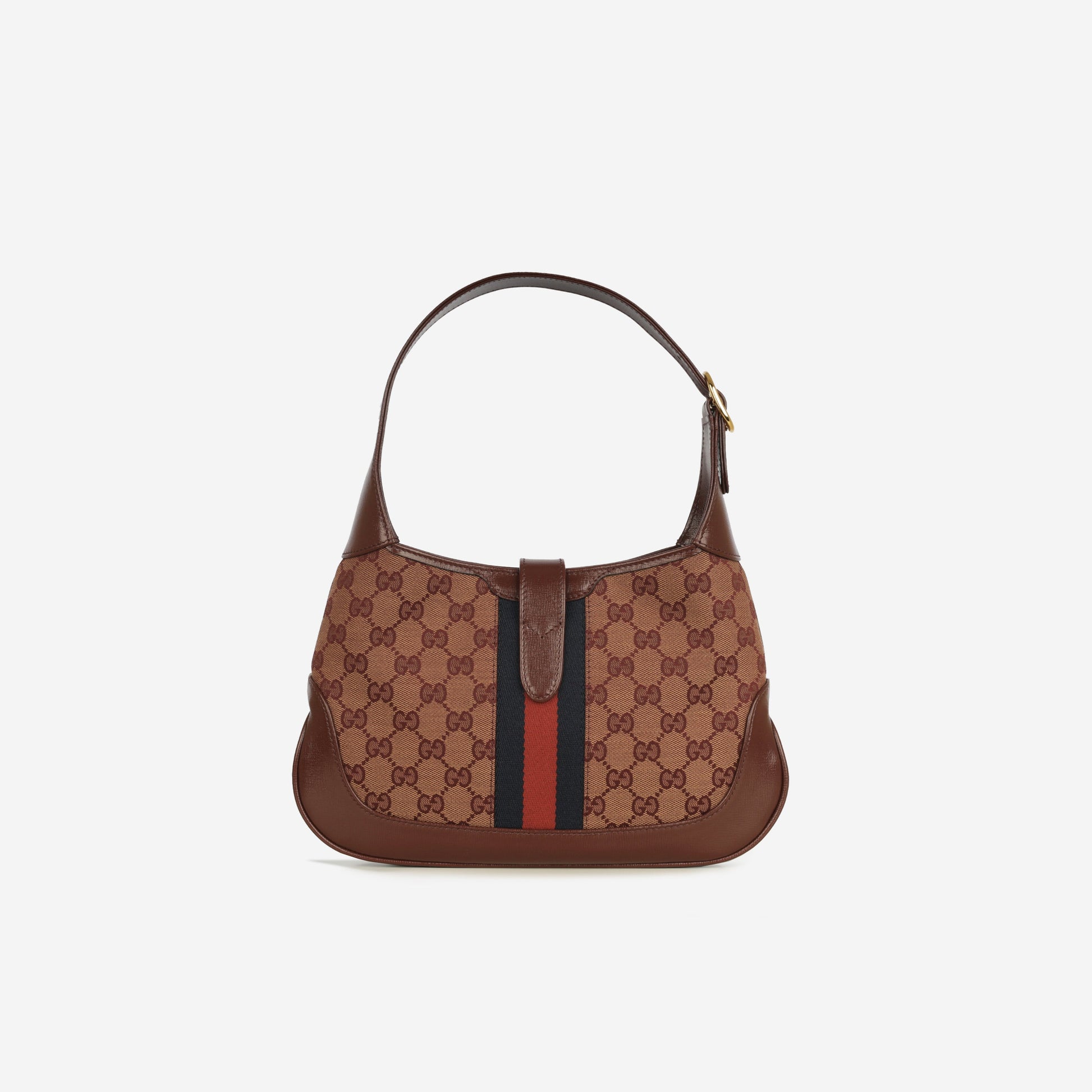 Named after Jackie Kennedy, the Jackie Bag from Gucci was christened in 1961 and has been a top seller ever since. The handbag that every busy, city-living woman on-the-go needs in her life. Crafted from burgundy GG canvas and accented with matching burgundy leather trim, not only reflects timeless style but also offers a dynamic and fashion-forward accessory for the modern trendsetter.�
