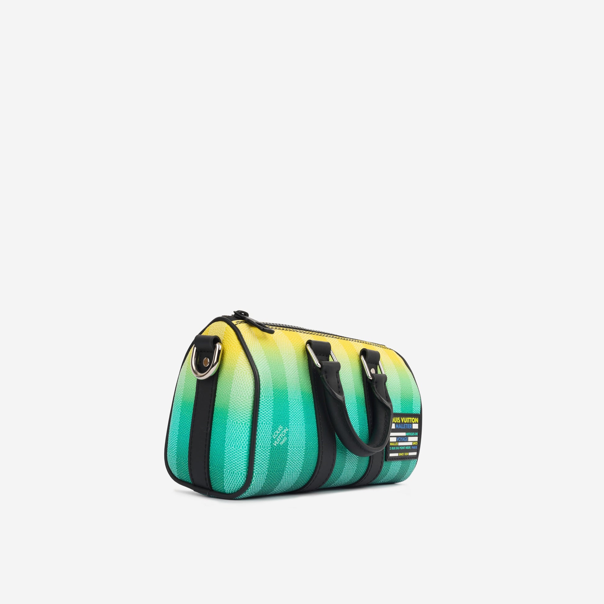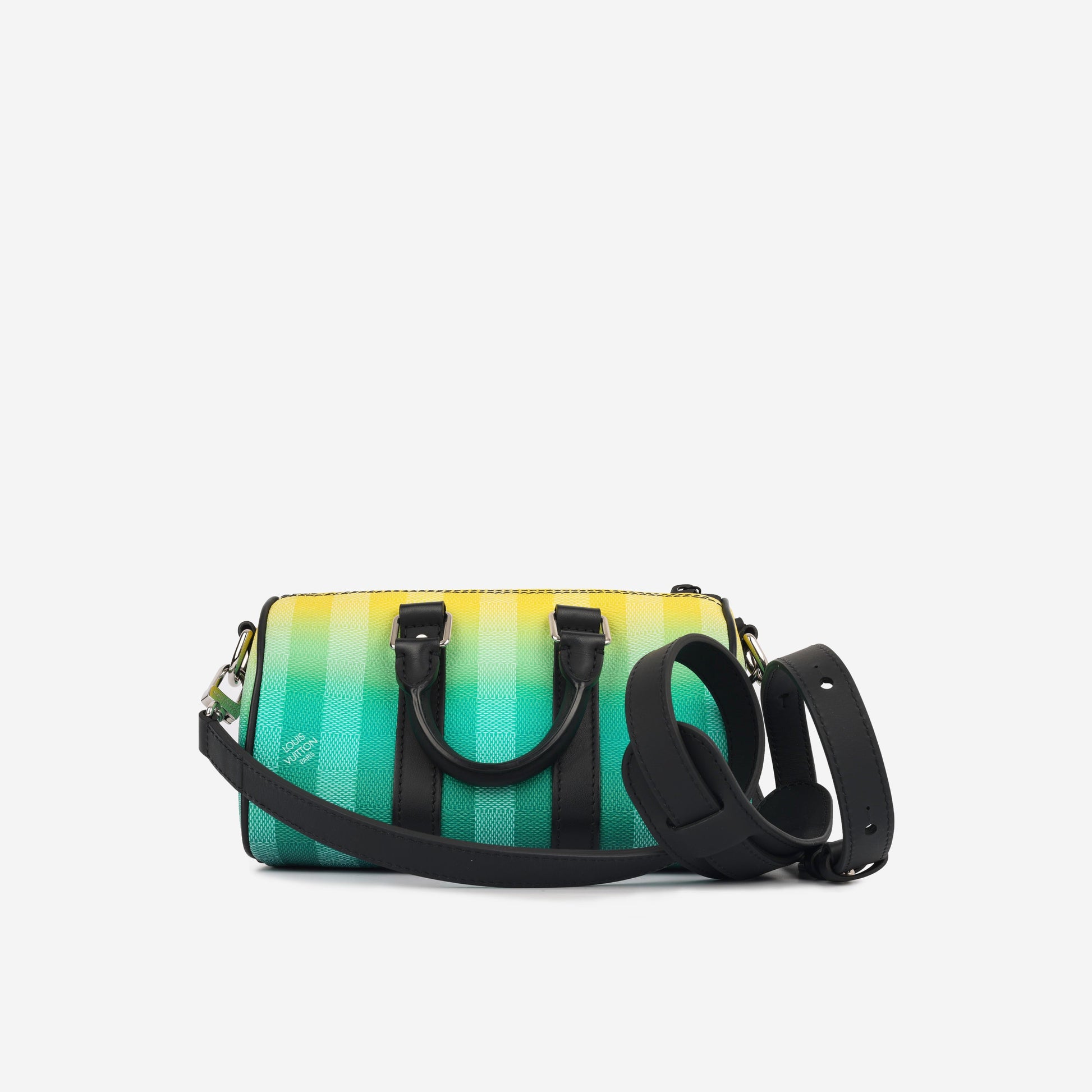 Introducing the Mini Keepall XS Bag from Louis Vuitton, where style meets functionality. Crafted from gradient green Damier Stripes canvas, this bag showcases tone-on-tone green stripes that seamlessly blend into yellow, creating a striking visual effect. Compact yet spacious enough for your everyday essentials, the Mini Keepall XS is designed for convenience and ease of carrying. Whether you're running errands or out for a casual outing, this bag is the perfect companion to elevate your style effortlessly.