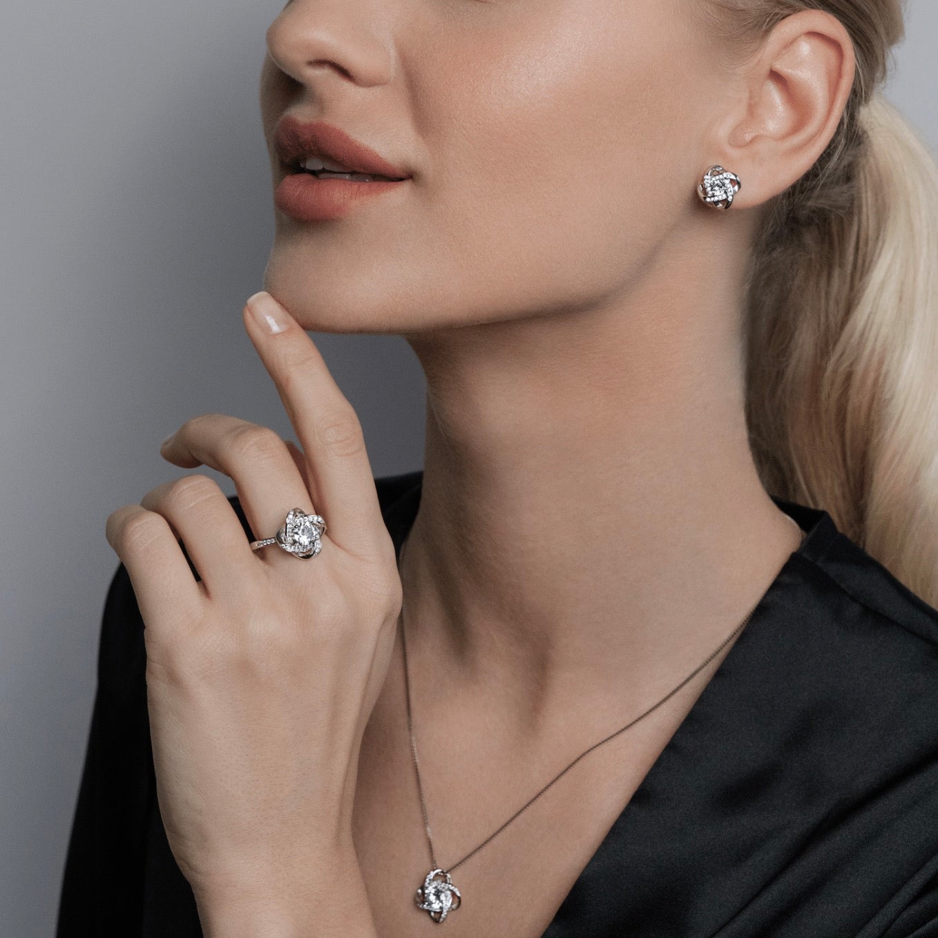 This beautiful necklace is a symbol of never-ending love. Sterling silver and sparkling crystals loop together to represent the intertwining of two souls.