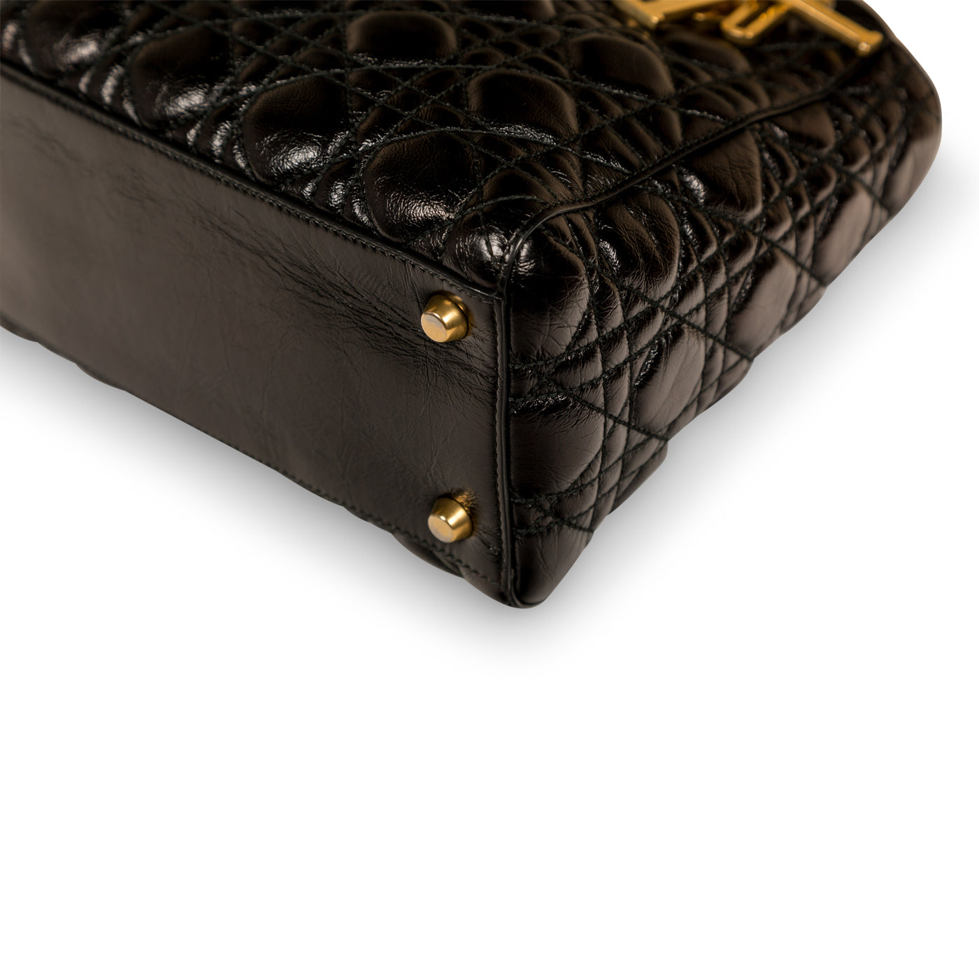 A timeless work of art, the "Lady Dior" bag has become the icon 'it-bag' within the entire Dior collection. Meticulously crafted by hand, this Medium-sized black patent leather bag is enhanced by signature Dior "Cannage" stitching. The Lady Dior bag, also known as the Princess bag, is undoubtedly Dior’s most iconic bag. The bag is named after Princess Diana, who skyrocketed its popularity ever since she was first gifted the bag in the Mid-90's.